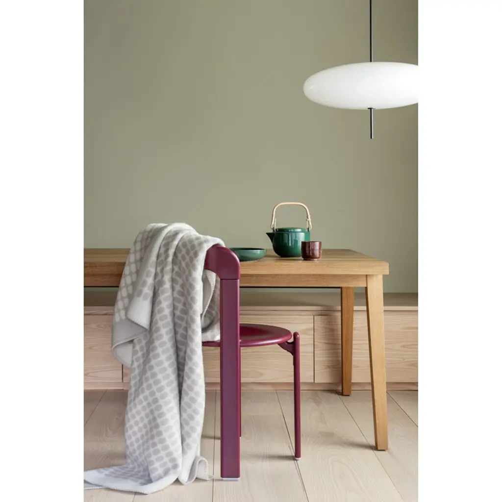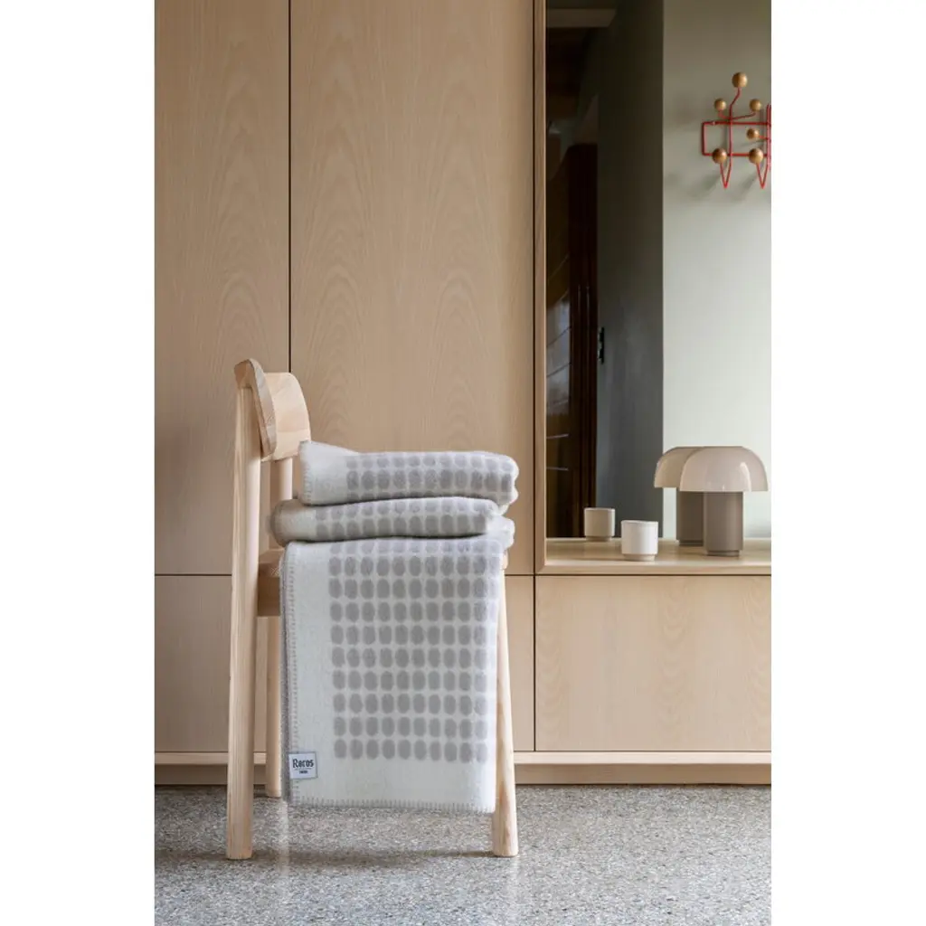 Røros Tweed's Palette throw is adorned with a graphic pattern created by Petter Skogstad and Fredrik Wærnes. This design is inspired by classical printmaking techniques such as silkscreen, lithography and woodcuts, evident in the structurally arranged dots across its surface. Crafted from wool and woven in two distinct colors, the blanket's pattern reverses on the opposite side in inverse tones, complemented by robust edge stitching. Perfect as a cozy throw for lounging on the sofa or over the bed, the Palette also serves as a thoughtful gift idea. High-quality home textiles by the Norwegian Røros Tweed are made from 100% Norwegian lambswool, shorn from sheep living free in the mountains. The manufacturing process is also kept fully in Norway to maintain high standards, which have been essential to the company's continued success since the 1940s.