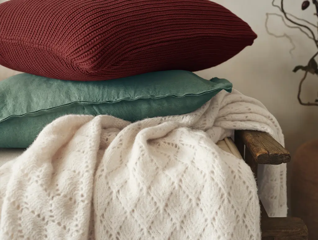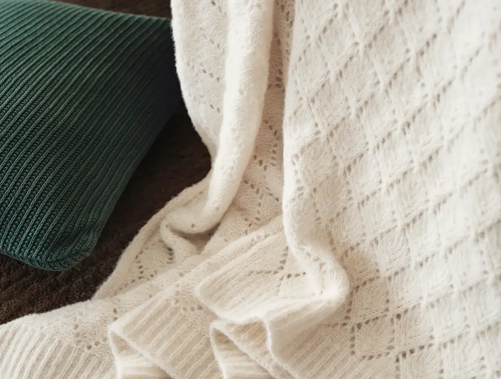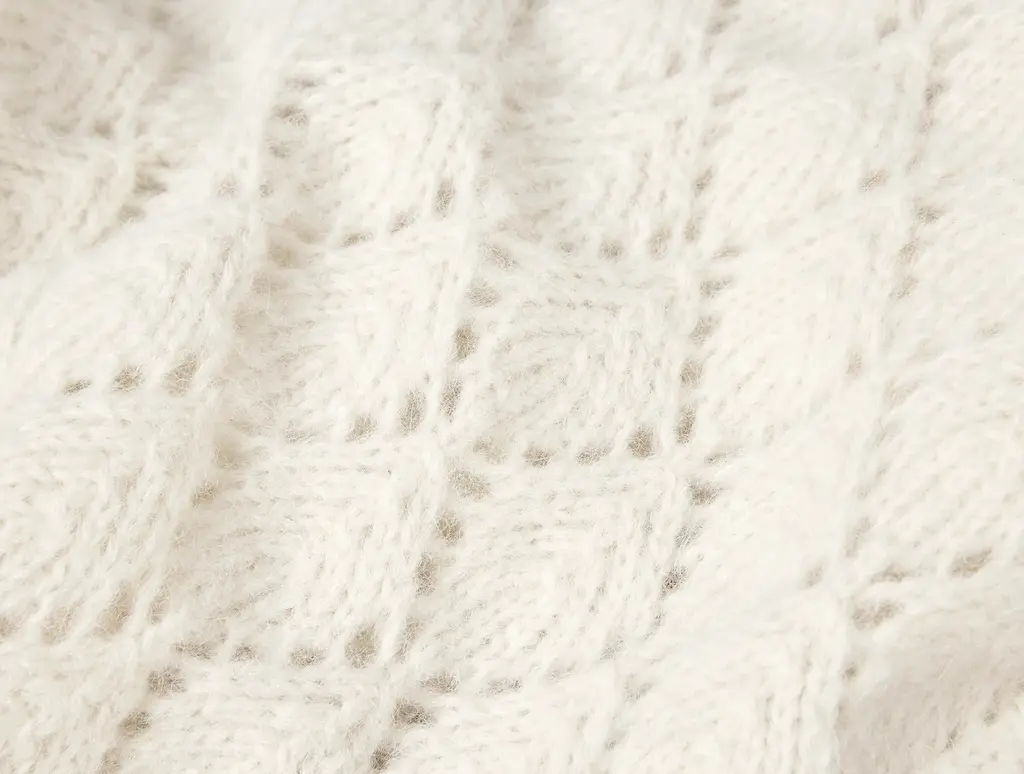 Inspired by traditional eyelet knitting techniques, the Paracas Alpaca Cotton Knit Throw adds an exquisite touch to any corner. Crafted from a luxurious blend of alpaca fibers and certified organic pima cotton, it feels soft and airy yet exceptionally warm. The alpaca fibers come from gently combing the alpacas to release the hair. This throw’s openwork stitch creates beautiful texture and pattern, designed to elevate any room.