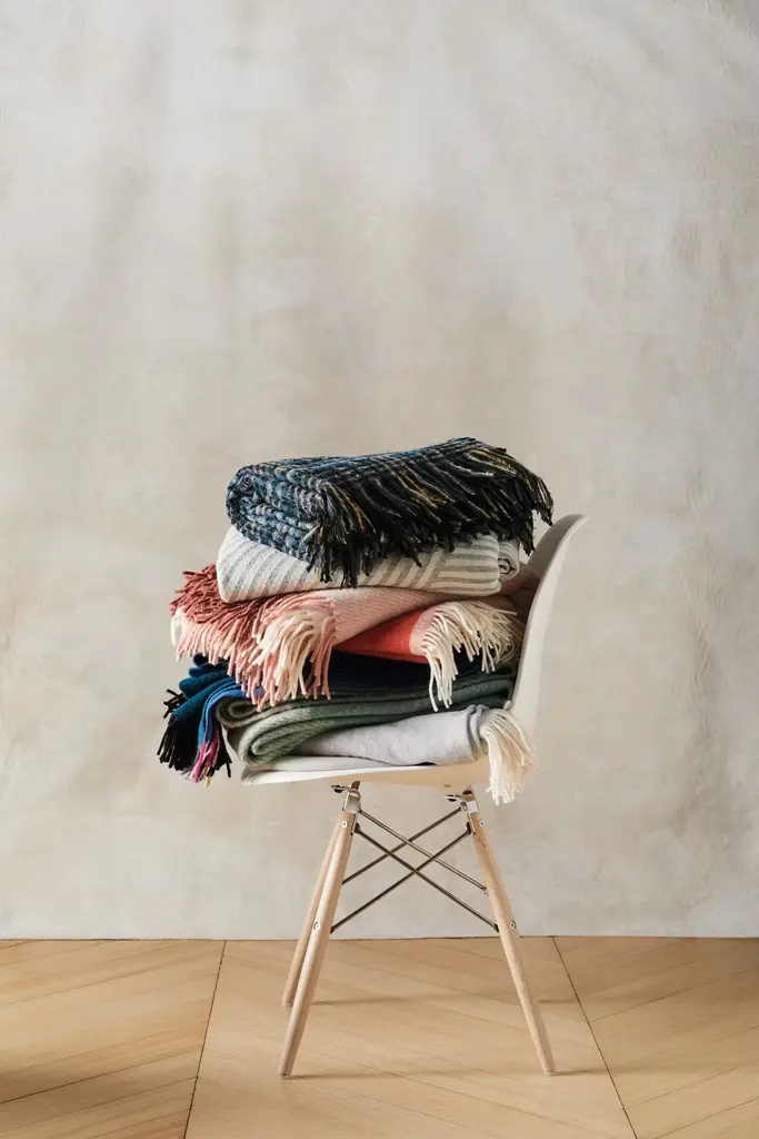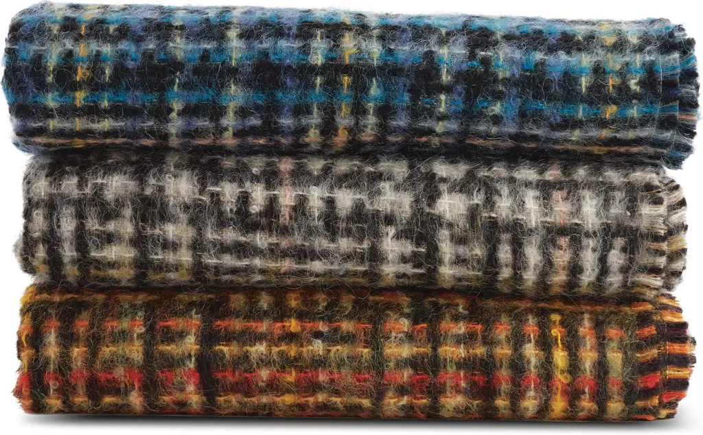 Maharam Design Studio specializes in the design and development of textiles for residential and commercial interiors. Balancing an appreciation of history with a focus on aesthetic and industrial innovation, Maharam's textiles reside in the permanent collections of MoMA, Cooper Hewitt and the Art Institute of Chicago, among others. The Passel Throw (2020) features a soft multicolor grid pattern. Made in France.