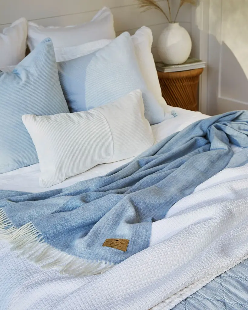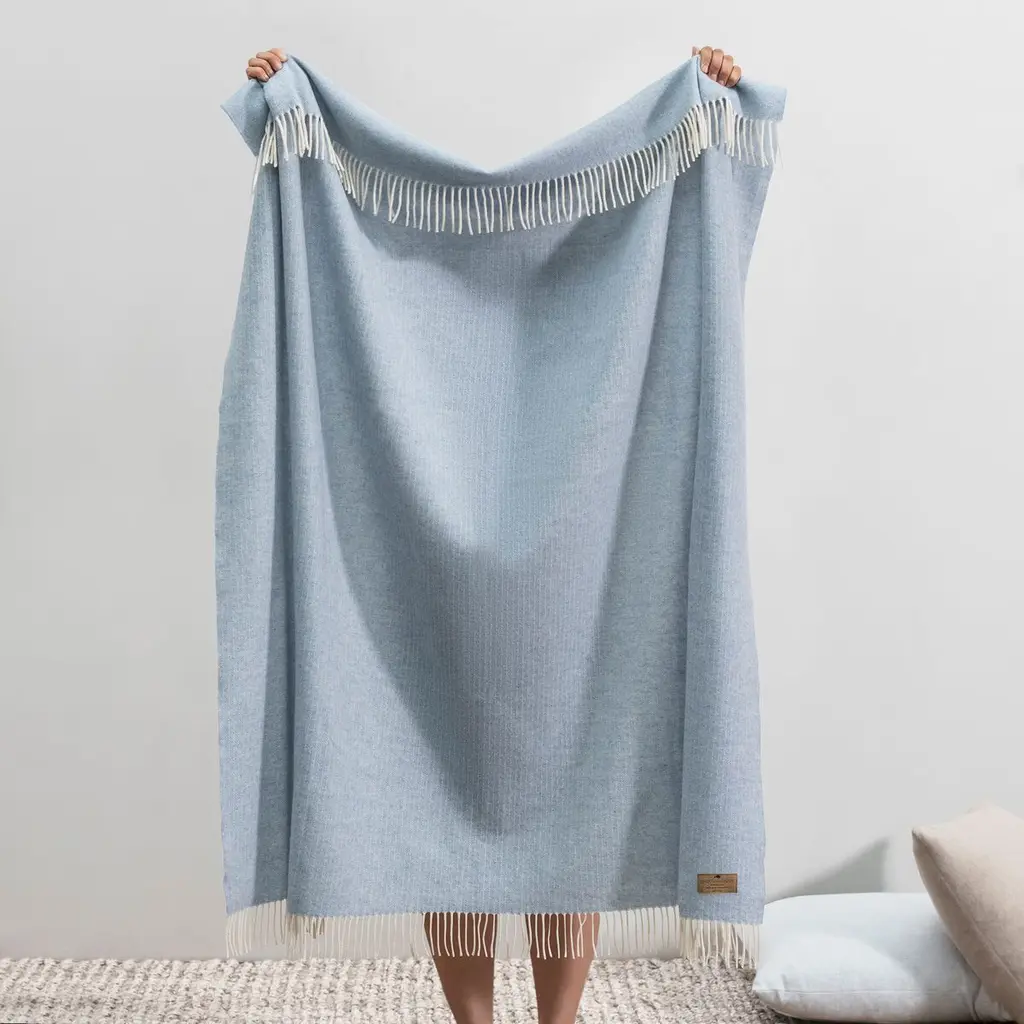 Crafted in Italy of cozy lambswool and sumptuous cashmere, this throw features a subtle pinstripe and long fringe for added allure. It looks just as luxurious draped over a sofa as it does folded at the foot of a bed, and it makes a memorable gift.