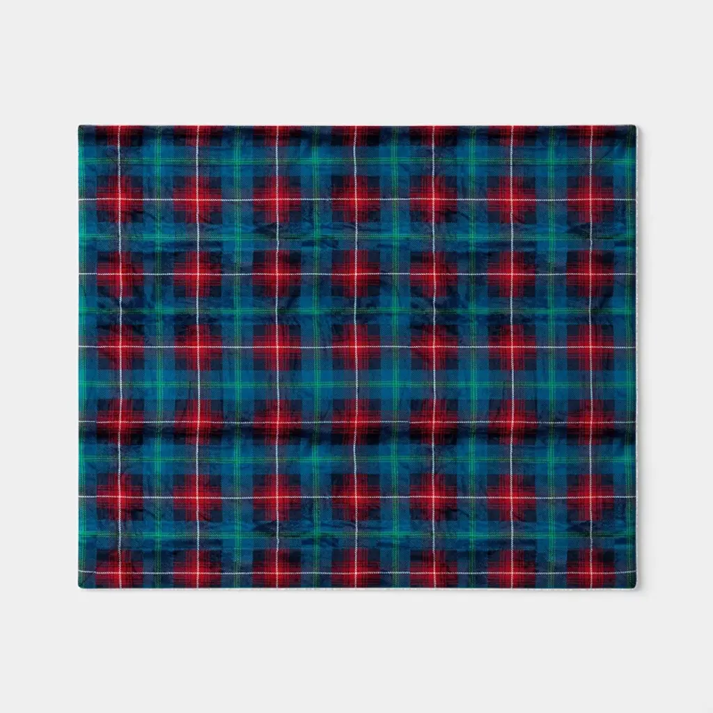 Add instant coziness to any room with this Plaid Plush Throw Blanket with Faux-Shearling Reverse from Threshold™. This rectangular throw blanket measuring 60 by 50 inches showcases a plush top adorned with a classic plaid pattern and a faux-shearling reverse, creating an inviting look in your space. Made from 100% recycled polyester fabric, the lightweight throw blanket is also machine washable for effortless cleaning.Threshold™: Looks like home, feels like you.