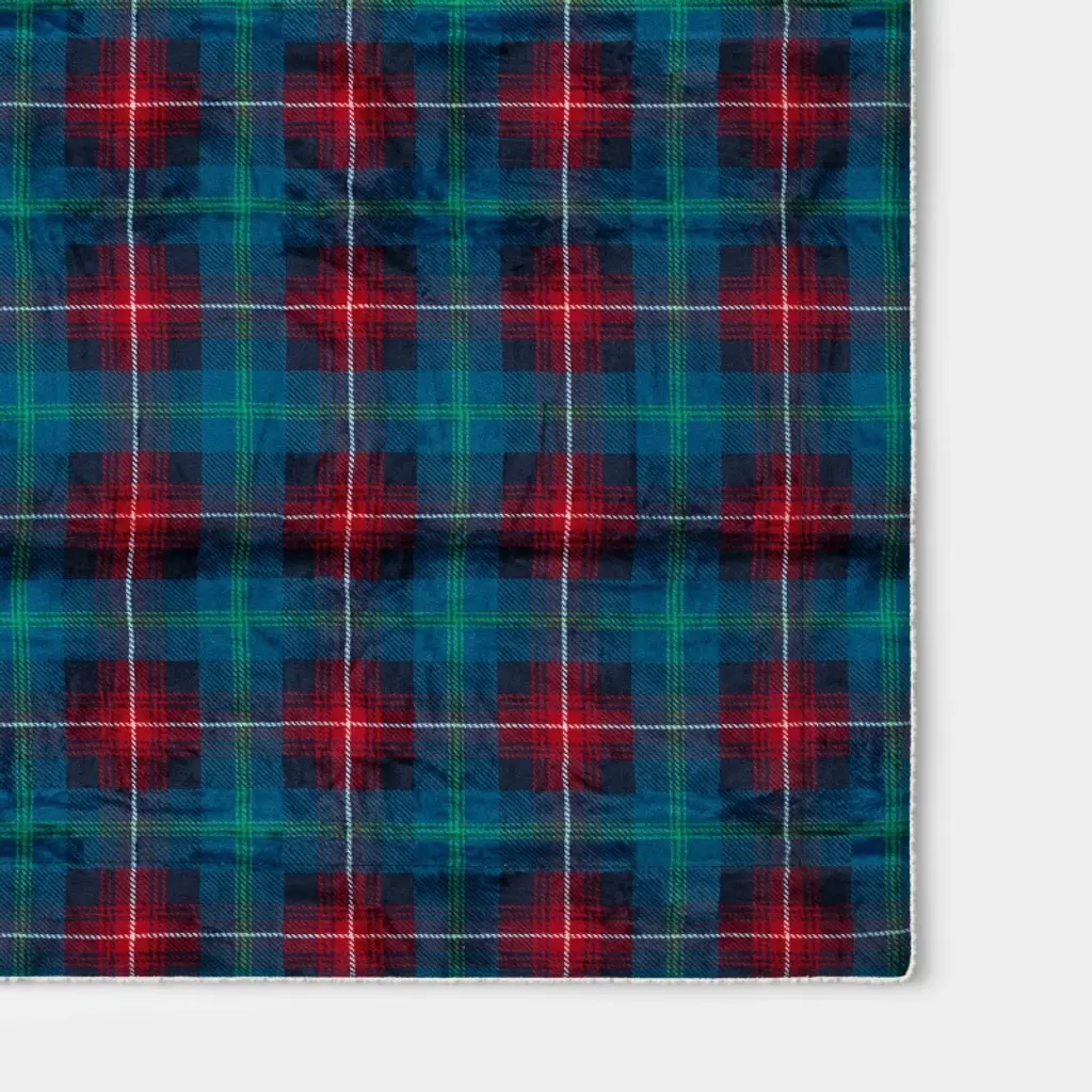 Plaid Plush Throw Blanket With Faux Shearling Reverse Blue - Threshold™