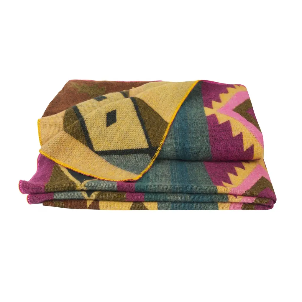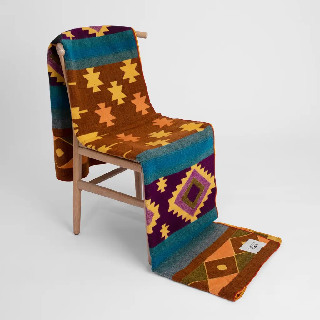 This native throw is hand woven from pure alpaca wool blended with cotton for extra strength. The plaid is reversible and has several prints on both sides. We chose a colorful front, with the other side in quiet pastel shades. This plaid gives your home a warm and unique touch. Traditional prints in a modern design. A real eye- catcher!Alpaca Loca uses wool from Ecuadorian alpacas. Here our products are handmade by a close-knit community of weavers. We value quality, tradition, integrity and social responsibility. The wool weavers receive a fair salary and we regularly check the working conditions in the factory ourselves. Through this setup, a purchase of an Alpaca Loca product contributes to the economic growth of Ecuador and alleviating poverty among alpaca herders.