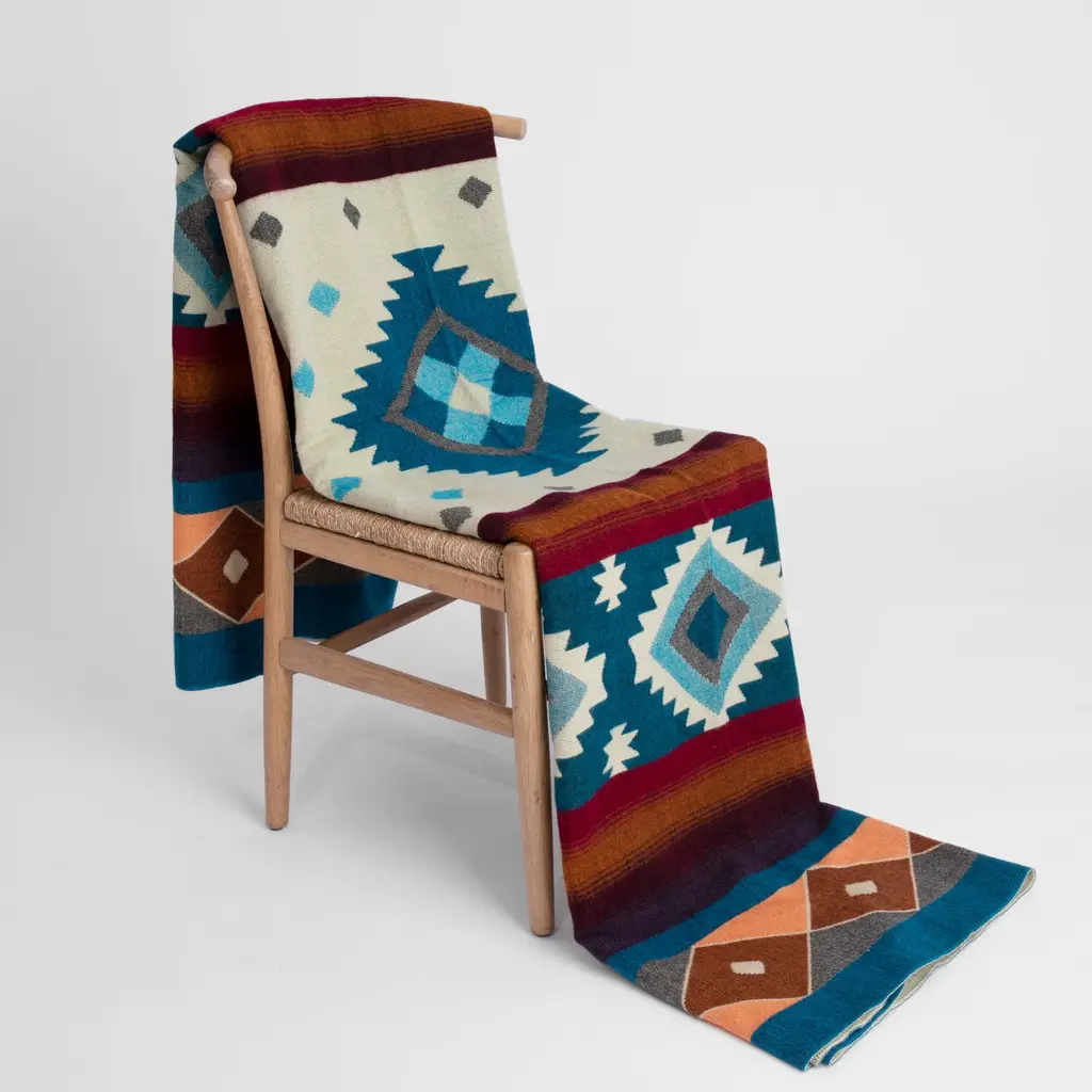 Plaid/throw Native Turquoise Alpaca Wool - Blue