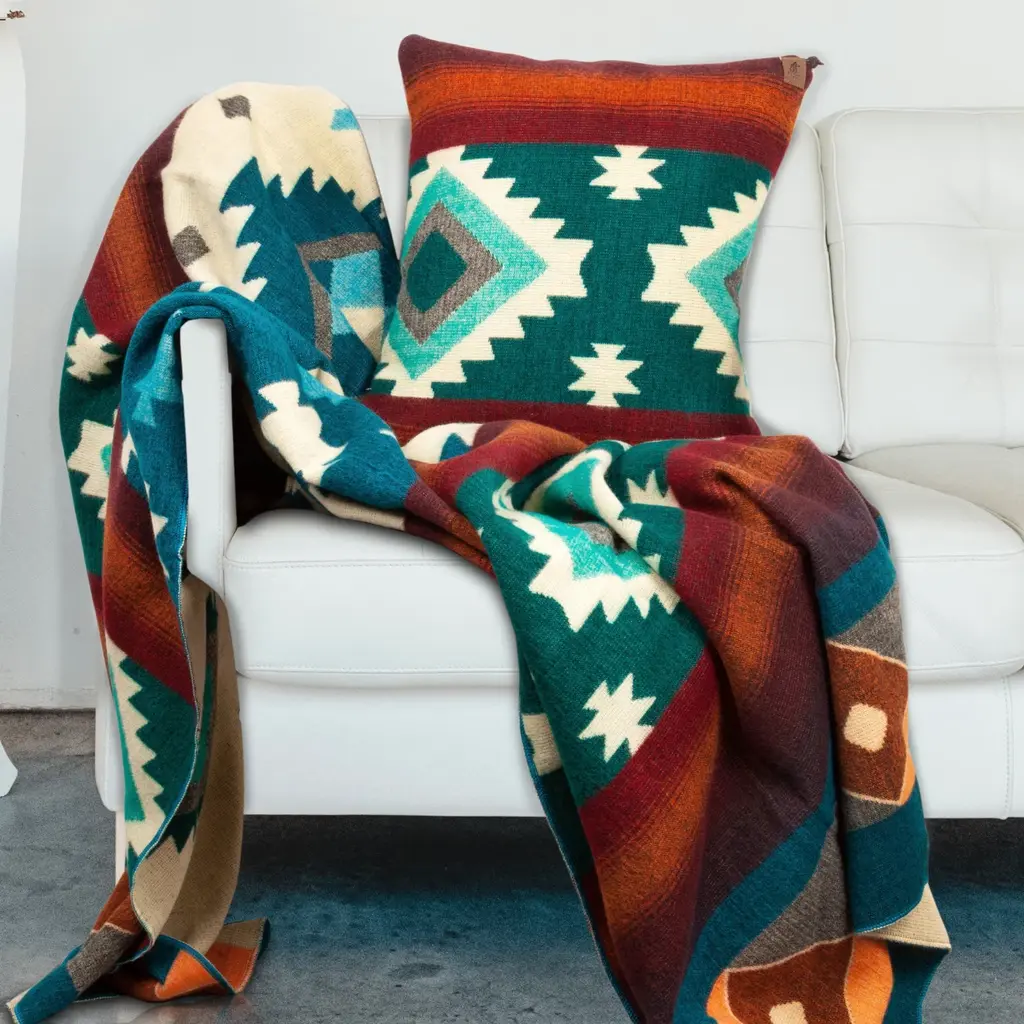 This native throw is hand woven from pure alpaca wool blended with cotton for extra strength. The plaid is reversible and has several prints on both sides. We chose a colorful front, with the other side in quiet pastel shades. This plaid gives your home a warm and unique touch. Traditional prints in a modern design. A real eye- catcher!Alpaca Loca uses wool from Ecuadorian alpacas. Here our products are handmade by a close-knit community of weavers. We value quality, tradition, integrity and social responsibility. The wool weavers receive a fair salary and we regularly check the working conditions in the factory ourselves. Through this setup, a purchase of an Alpaca Loca product contributes to the economic growth of Ecuador and alleviating poverty among alpaca herders.