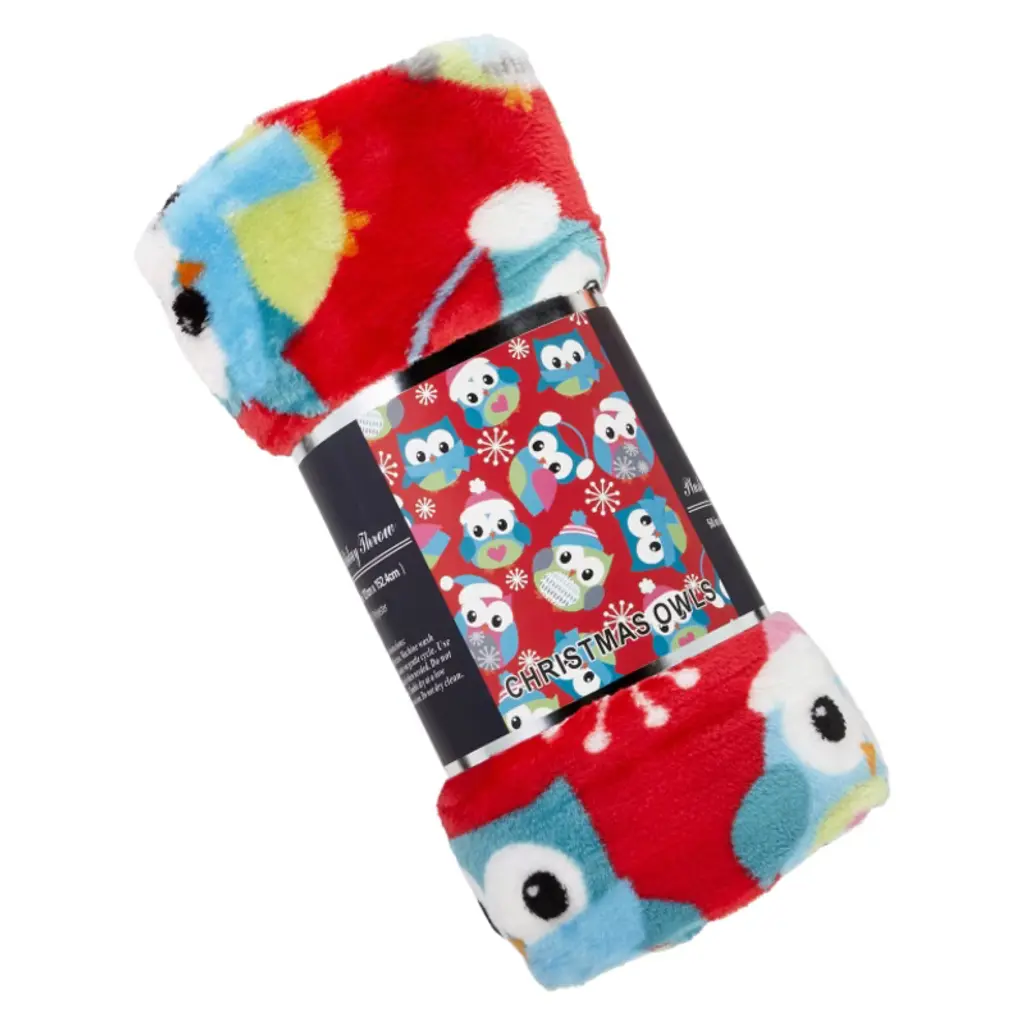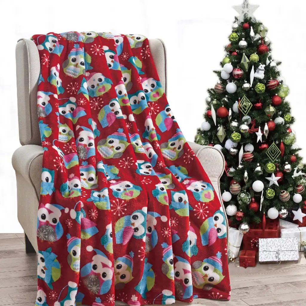 Plazatex Holiday "Owl" Design Micro Plush Throw Blanket - (50"x60") In Multicolor