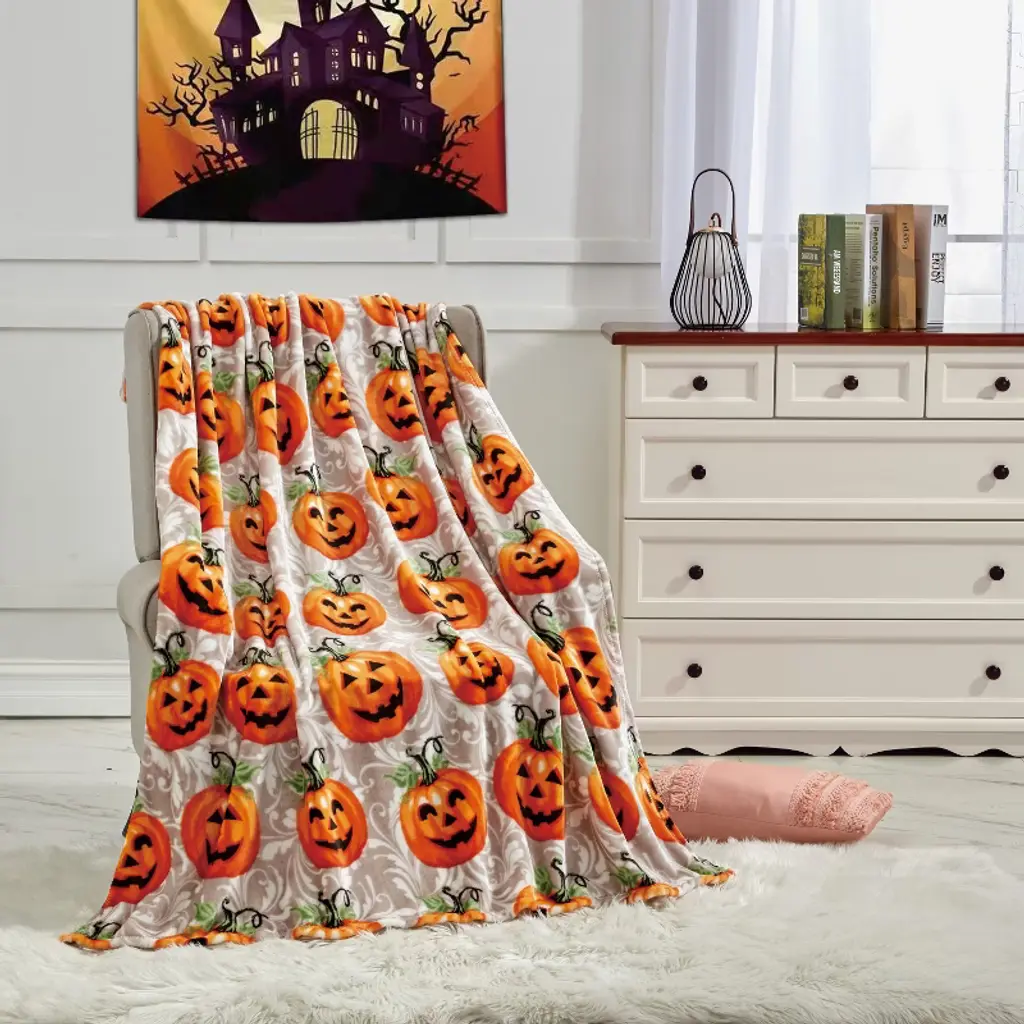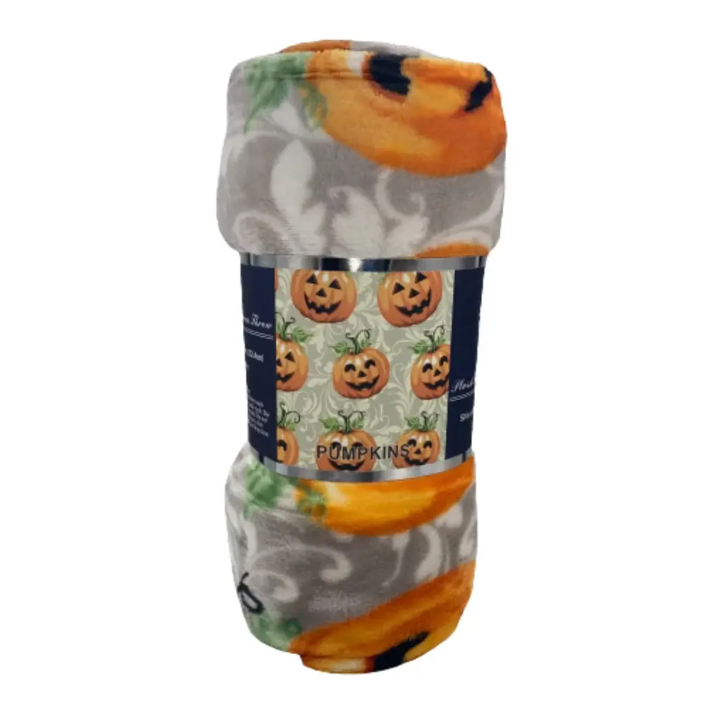 Plazatex Pumpkins All Season Plush Decorative Halloween Throw Blanket 50" X 60" Orange