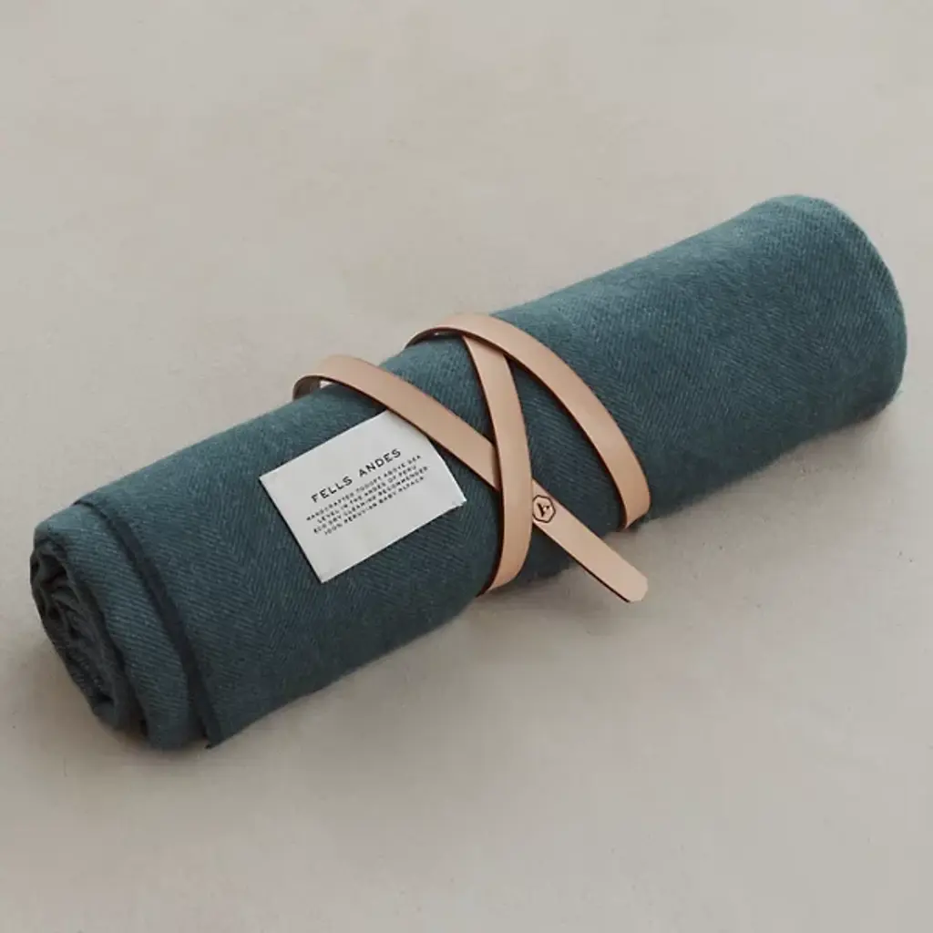 The Pluma Throw by Fells Andes transforms its surroundings with luxurious texture and tone, marrying a classic herringbone pattern with contemporary elegance. Fashioned from rare Peruvian Royal Baby Alpaca fleece, its black and ecru palette whispers sophistication. Adorned with a leather strap hand-burnished and debossed in Sonoma, this throw transcends comfort, becoming a tactile testament to artisanal craft and timeless design.