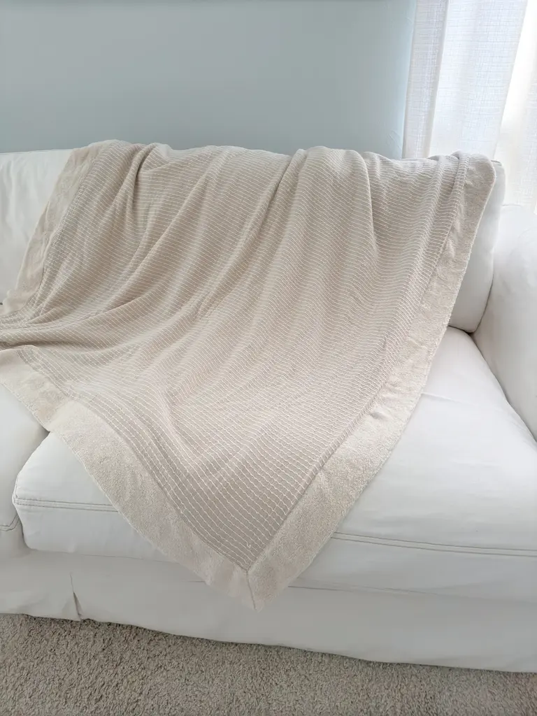 The Plush Cotton Throw is made with soft cotton which is naturally breathable. This blanket will style effortlessly from season to season. Color: Beige, Charcoal Grey. Dimensions: 55"x75". Material: 100% Cotton. Made in Turkey. Machine Wash Delicate with like colors. Hang to Dry. No iron.