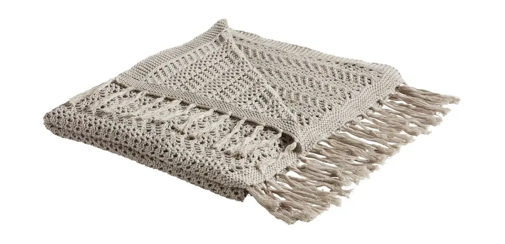 Your favorite shawl or sweater cape, reimagined for your home. This delicate throw makes a robust fashion statement in almost any décor.
