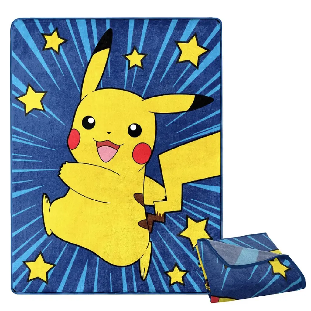 Wrap yourself in cozy comfort with this Pokémon throw blanket featuring a playful Pikachu design surrounded by stars and light beams. This blanket is made from super-soft plush fleece, which adds warmth and style to your bed, couch, or favorite lounging spot. Whether you're cuddling up for a movie, taking a nap, or simply looking for extra comfort, this versatile throw is a must-have for any Pokémon fan. Crafted from durable 100% polyester, it's easy to care for and built to last, making it ideal for daily use.
