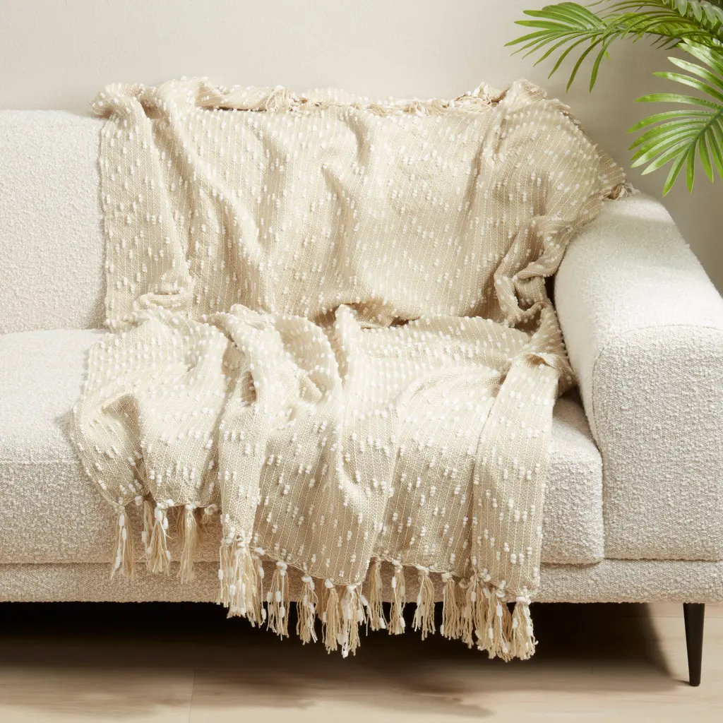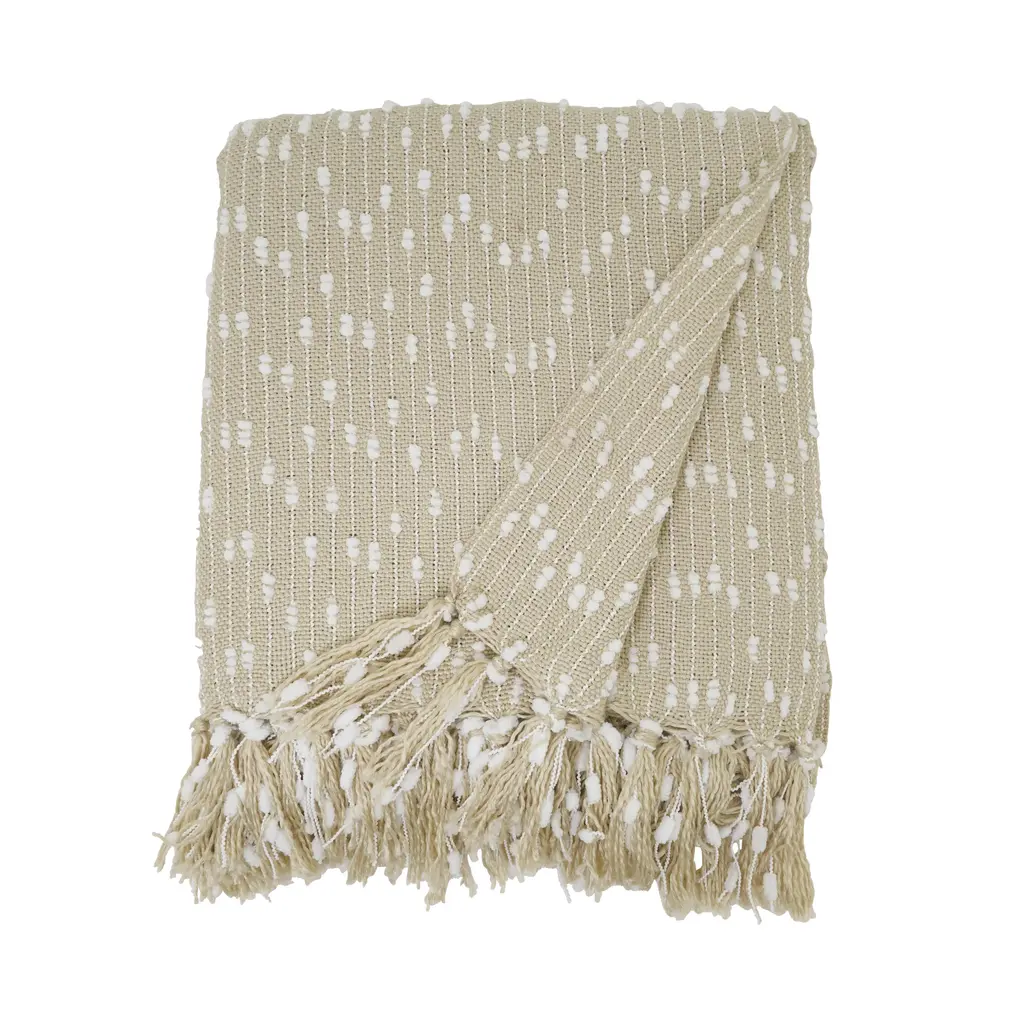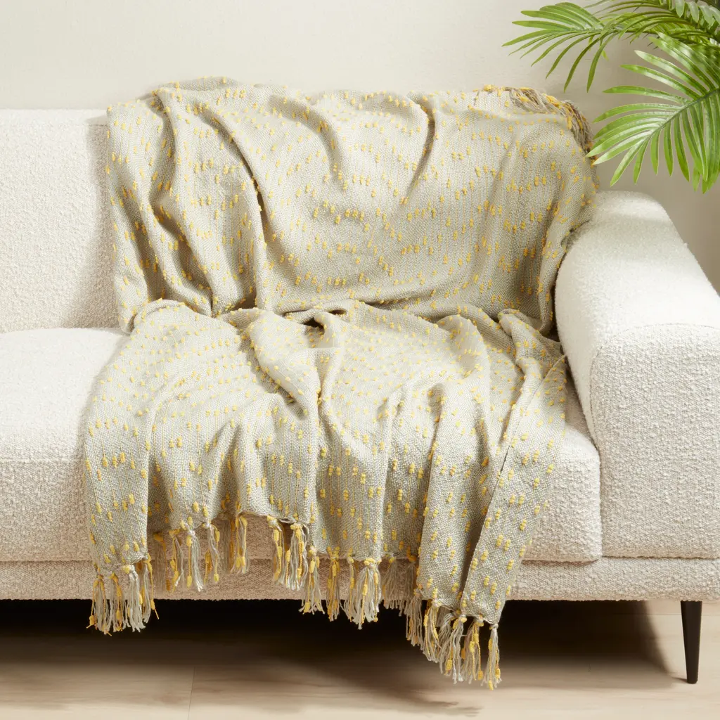 Adorable and chic, the Petite Pom Pom Design Throw Blanket is a versatile addition to your home decor. It works on sofas and armchairs of all styles, looks great throw over the end of a bed, but also on your patio bench or porch swing. The small pom poms bring a whimsical touch to the decor.