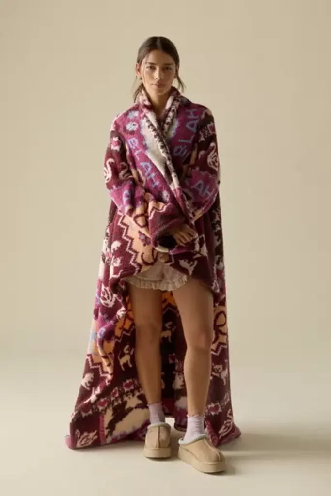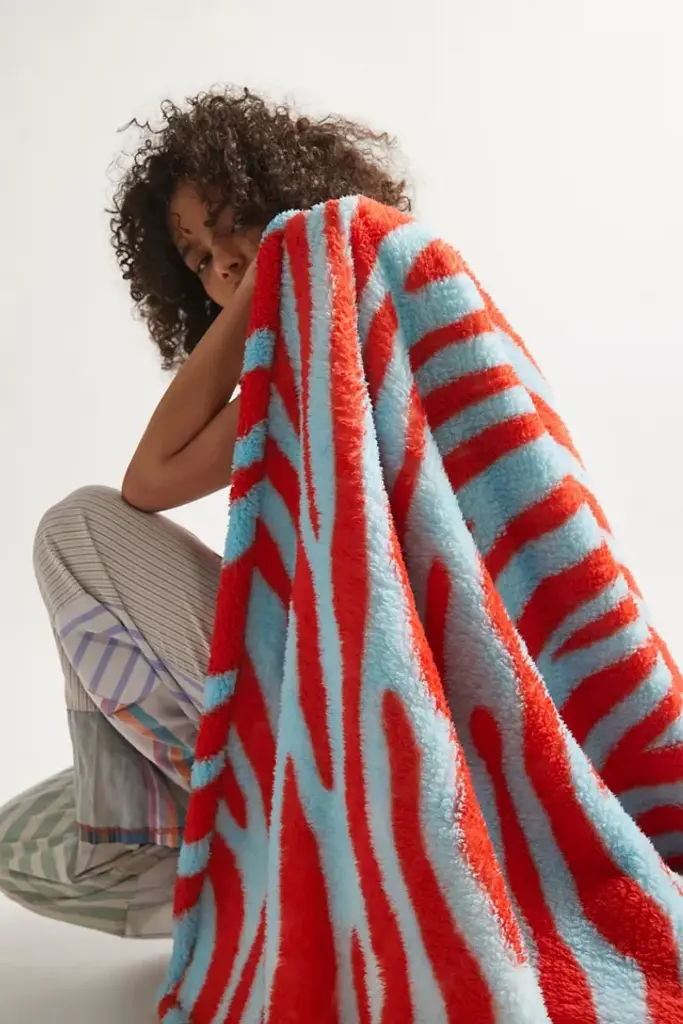 Wrap up and relax with this throw blanket. Made from polyester with a seriously plush feel for extra softness, this throw blanket is finished with abstract motifs that lend an artful feel to your bed or sofa. Its lightweight construction is perfect for bundling up year-round. Available exclusively at Urban Outfitters.