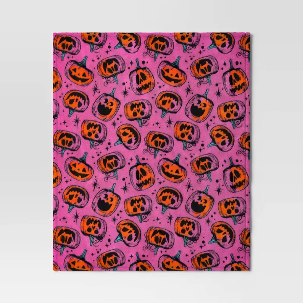 Pumpkin Creature Plush Throw Blanket Pink - Hyde And Eek! Boutique™
