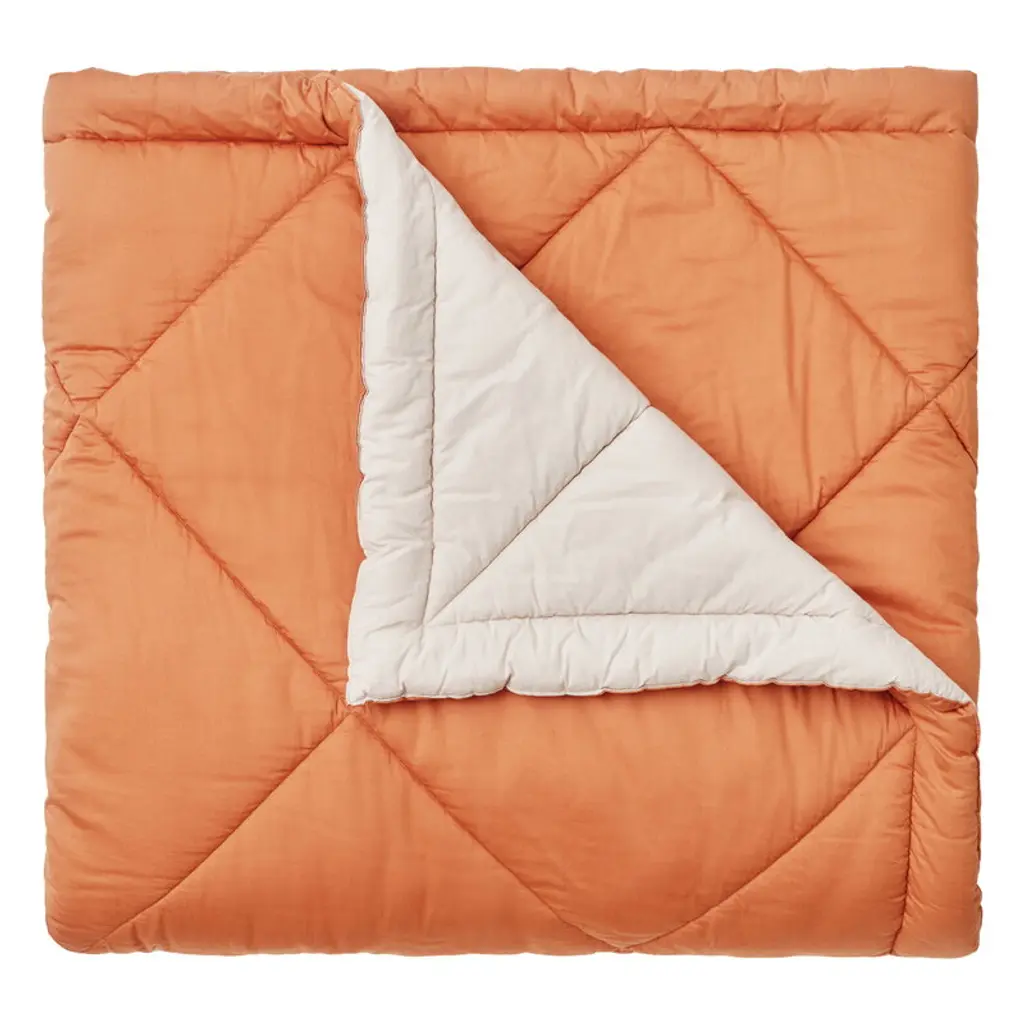 Enjoy cozy evenings with the warmth of this Quilted Jersey Throw with Faux Shearling Reverse from Room Essentials™. Made from 100% recycled polyester jersey fabric on one side and plush faux shearling on the other, this quilted throw blanket feels soft and helps keep you nice and cozy. Featuring a dual-hue design with a quilted front in cobalt blue hue and white faux shearling on the reverse, this decorative throw blanket pairs perfectly with various decor styles. Room Essentials™: Everyday Value