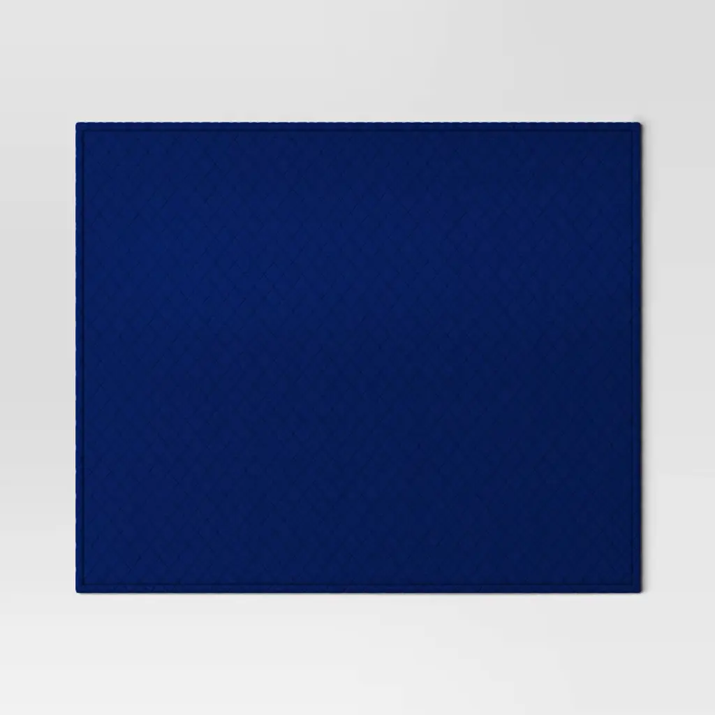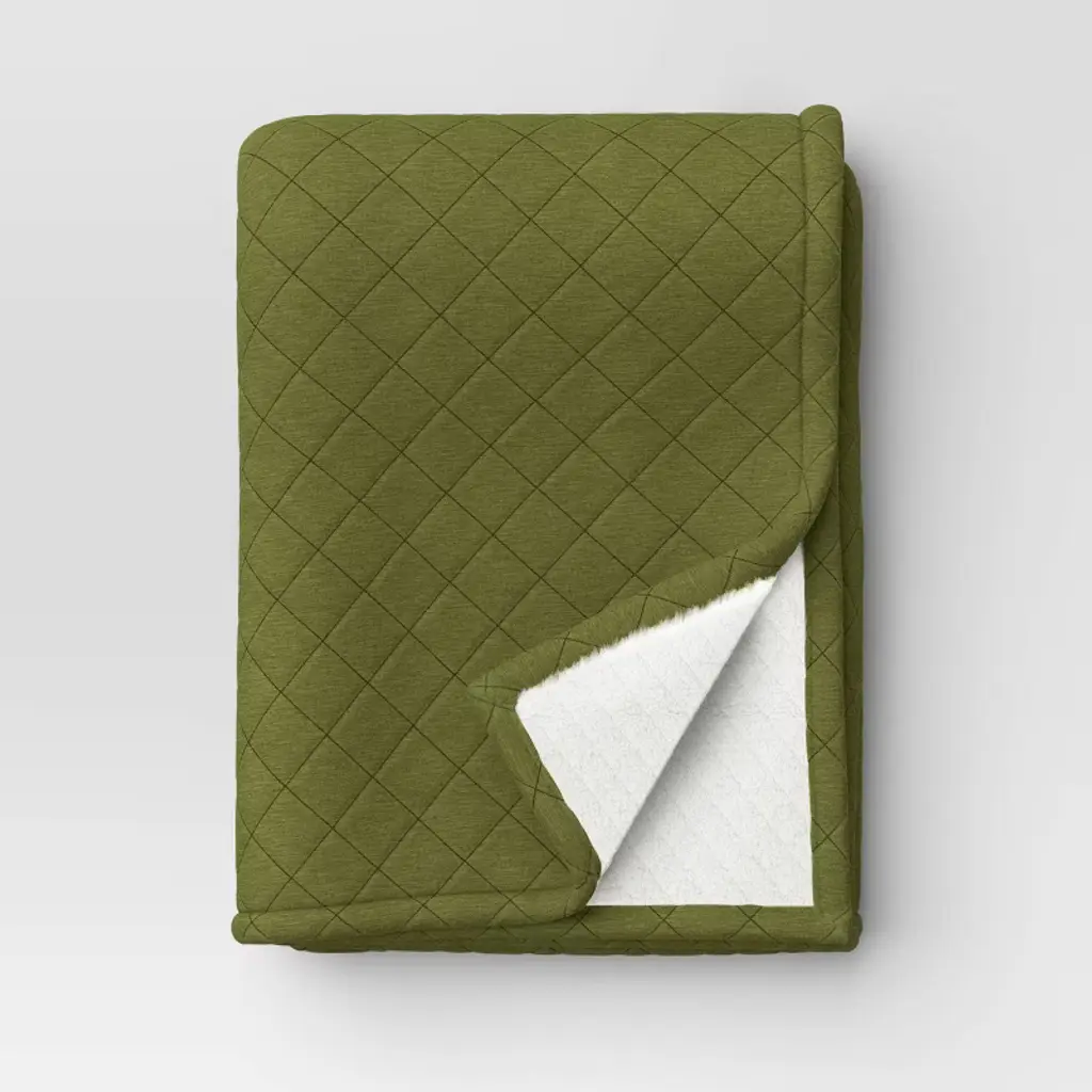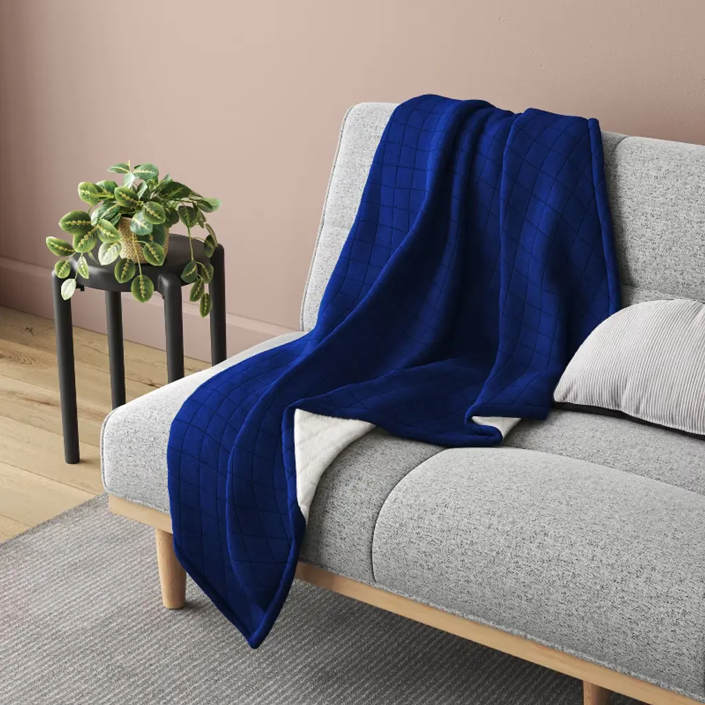 Quilted Jersey Throw Blanket With Faux Shearling Reverse Heathered Cobalt Blue - Room Essentials™