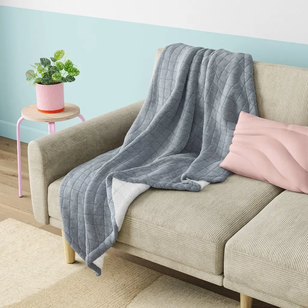 Quilted Jersey Throw Blanket With Faux Shearling Reverse Heathered Gray - Room Essentials™