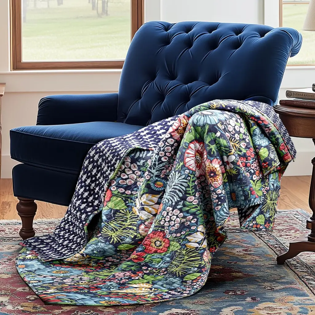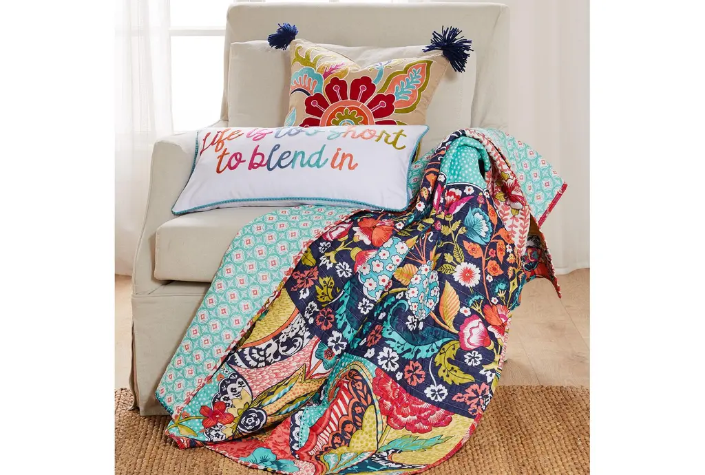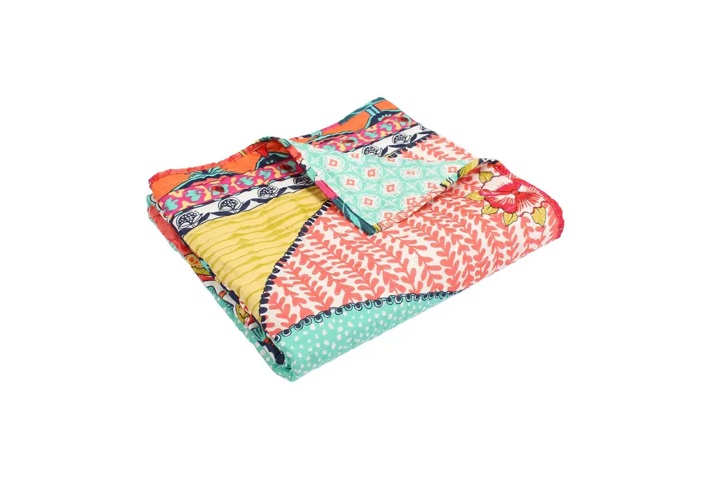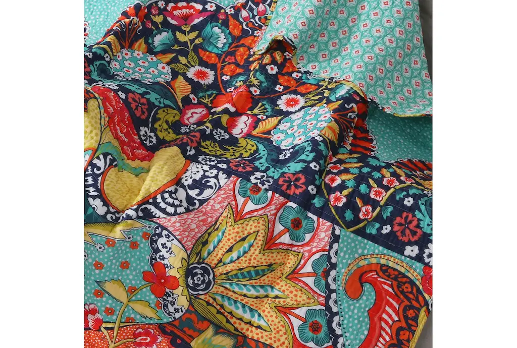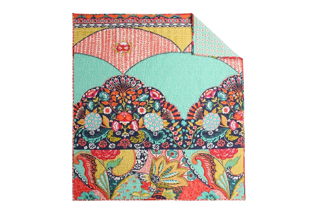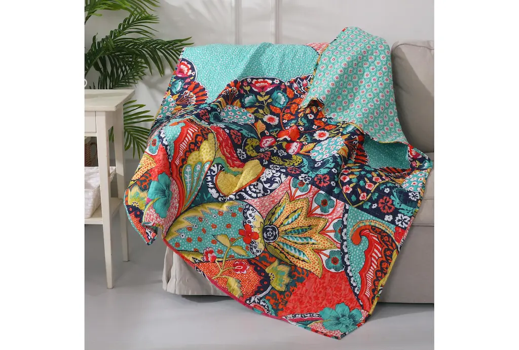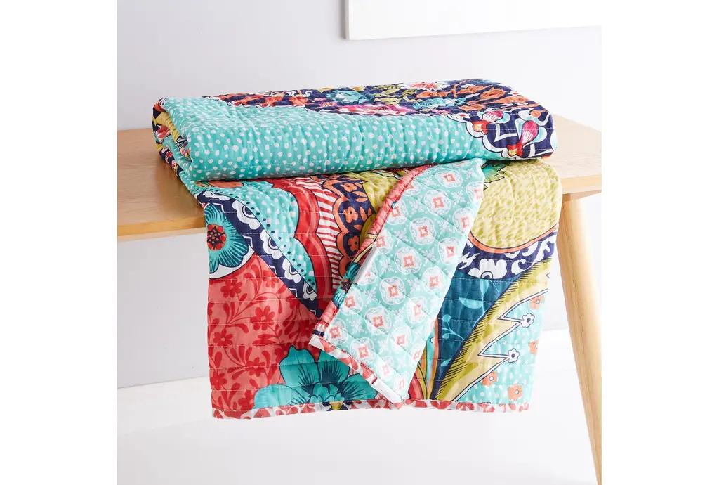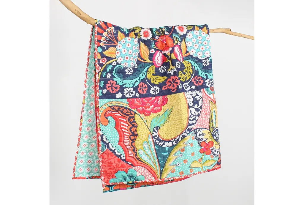Enhance your home decor with this Quilted Reversible Cotton Rectangle Throw featuring a colorful geometric design to teal medallions. This multicolor throw is a perfect blend of traditional style and contemporary design, offering both comfort and aesthetic appeal. Ideal for adding a pop of color and warmth to any room, this cotton throw is also machine washable for easy care.