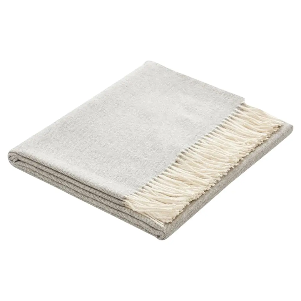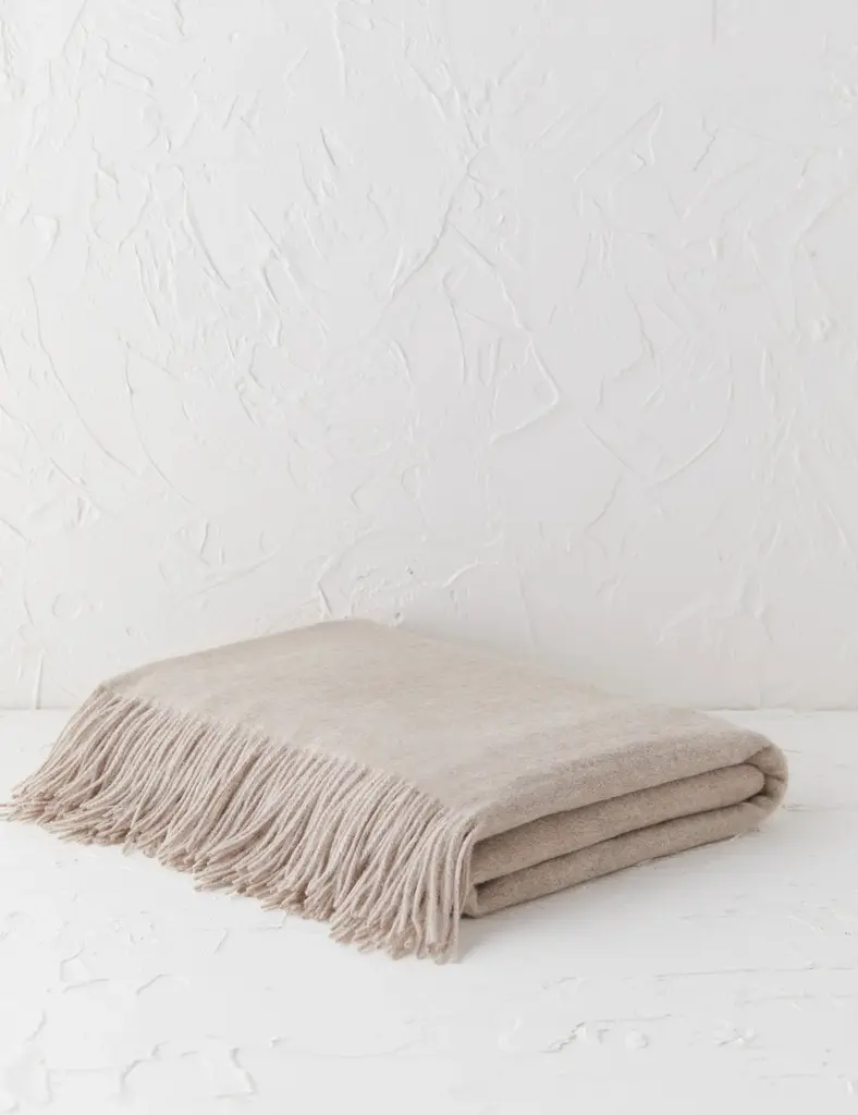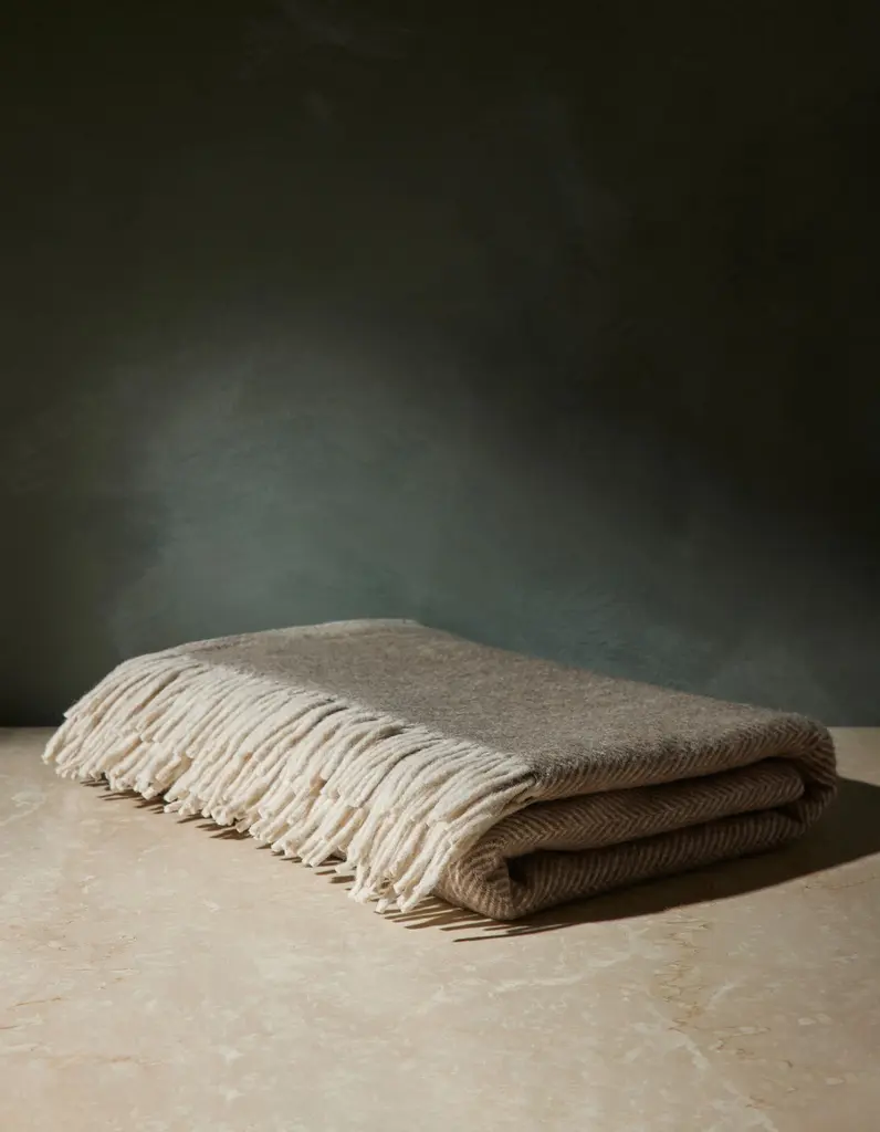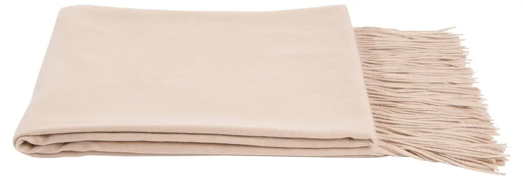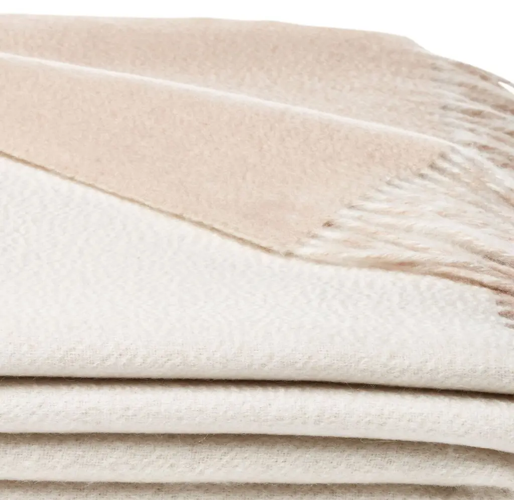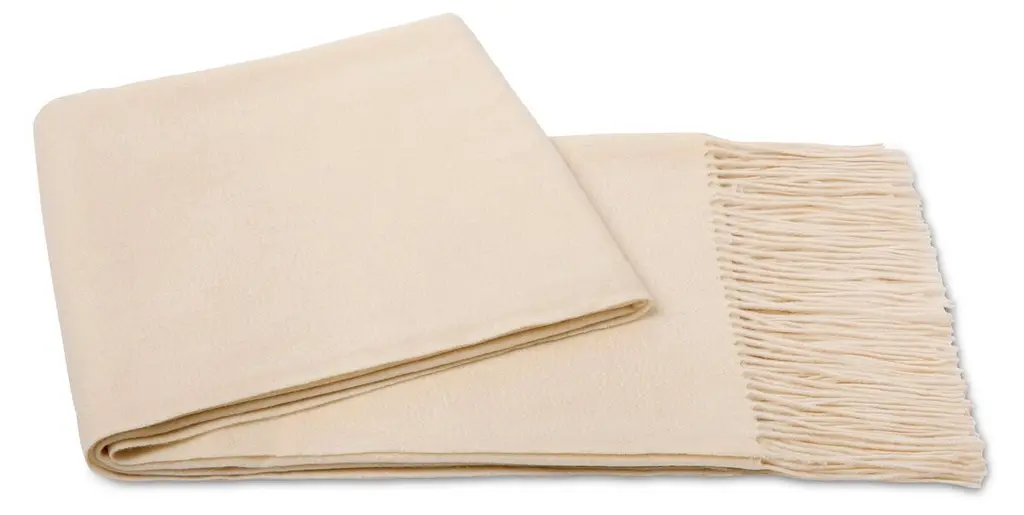 The reversible color scheme and six-inch fringe, as well as the sultry softness of the cashmere-wool blend, mark this as a truly sumptuous throw. Made in Mongolia.
