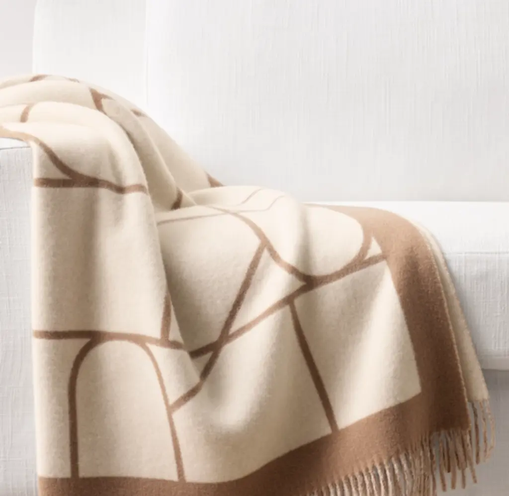 FREE SHIPPINGThe RH monogram reflects an emblem of luxury on our bespoke wool and cashmere throw. Crafted by a historic mill in Tuscany, local artisans spin the fine yarns, then use Jacquard looms to produce a rich, graphic weave with superior softness and a velvety drape.