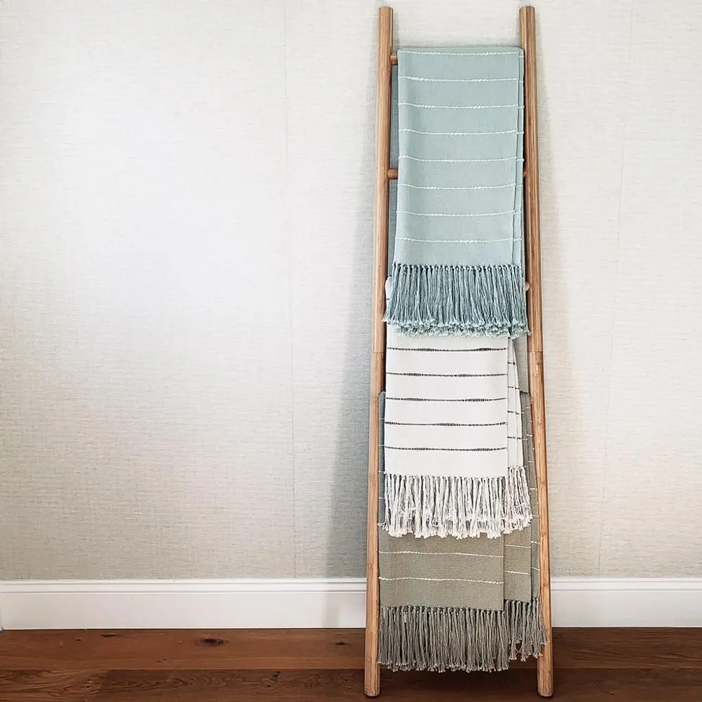 This airy handwoven throw features delicate lines in contrasting colors. The subtle variations in this Riona Modern Green Cotton Handwoven Throw Blanket present just the right amount of detail to the stripes.
