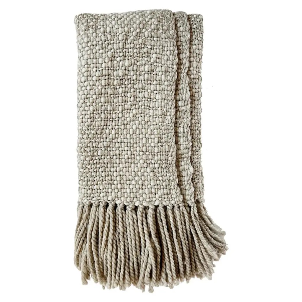 A stunning option to cuddle up with, this luxurious wool throw is crafted from thick, plush wool, accented with subtle sage stripes and extra chunky fringe for a classic look. The perfect extra layer for cooler nights, this rich, textural throw can be tossed over the back of a chair or the corner of a bed.Each throw is hand-loomed from incredibly soft highland wool. Masterfully crafted by a group of 26 artisans in Lima, Peru. Made start-to-finish in a fair trade environment.