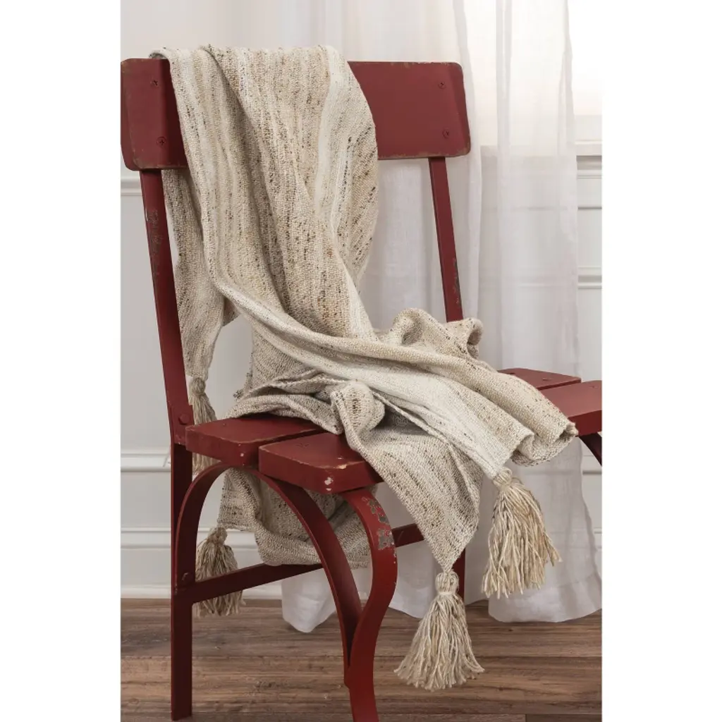 This stunning throw from Rizzy Home is designed to elevate your space to the next level of sophistication and elegance. Measuring 50"" x 60"", this gorgeous piece features an abstract stripe design that effortlessly combines modern industrial and modern craft elements to create a truly unique look. With a medium woven density, the throw is both ultra soft and comfortable, while the sides and bottoms are hem finished for a clean, polished finish.With a medium weight and four corner tassels of the same yarn in the same pattern, this throw is perfect for curling up with on cool evenings. The multi-beiges, khaki and natural colors are woven together seamlessly to create a mesmerizing, multi-dimensional effect, evoking an urbane and sophisticated ambiance. Whether draped over the back of your sofa, chaise, or even used as a stylish accent for your bed, this throw from Rizzy Home is the ultimate way to add a touch of glamour and elegance to your home décor.