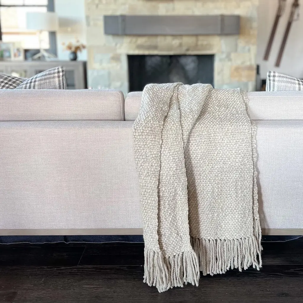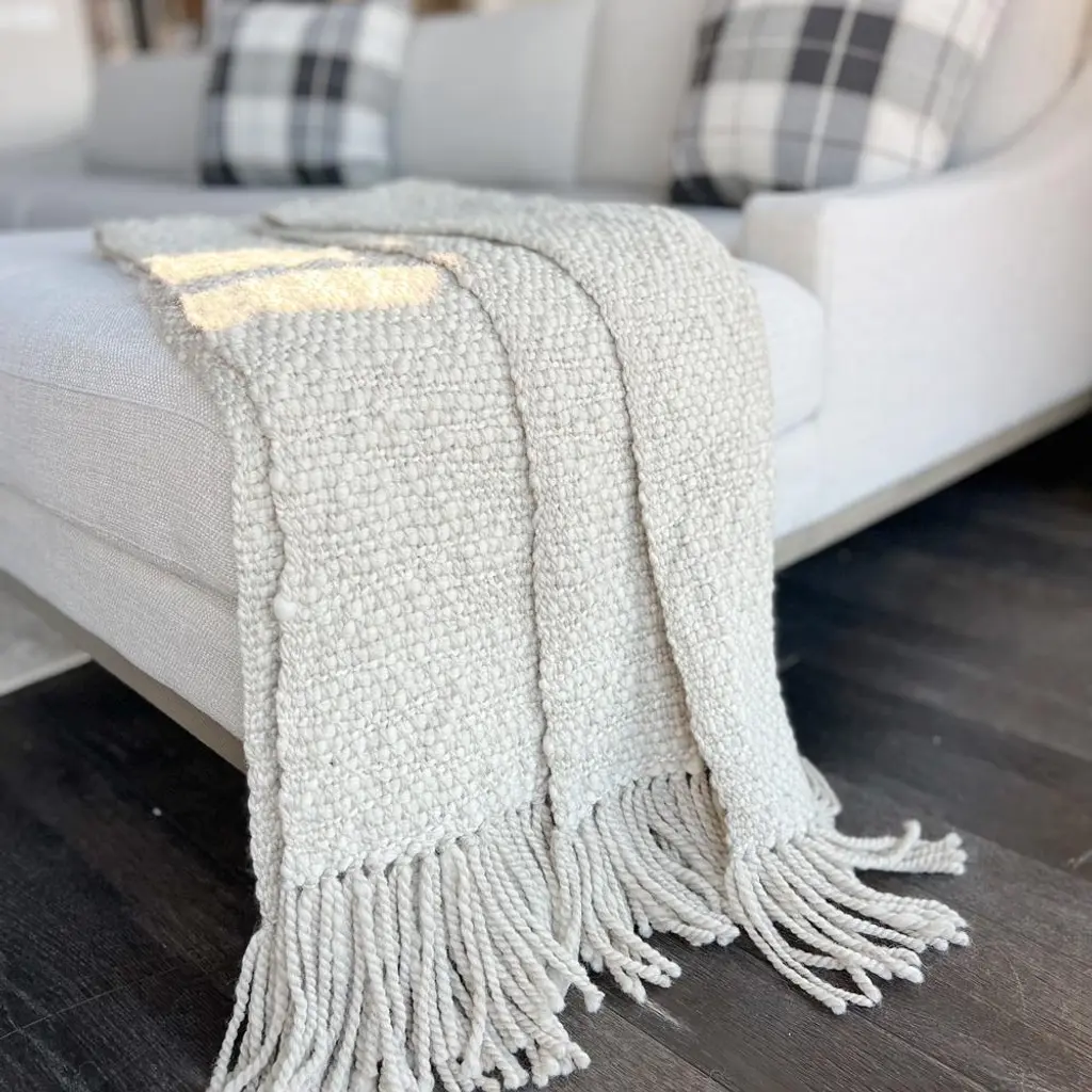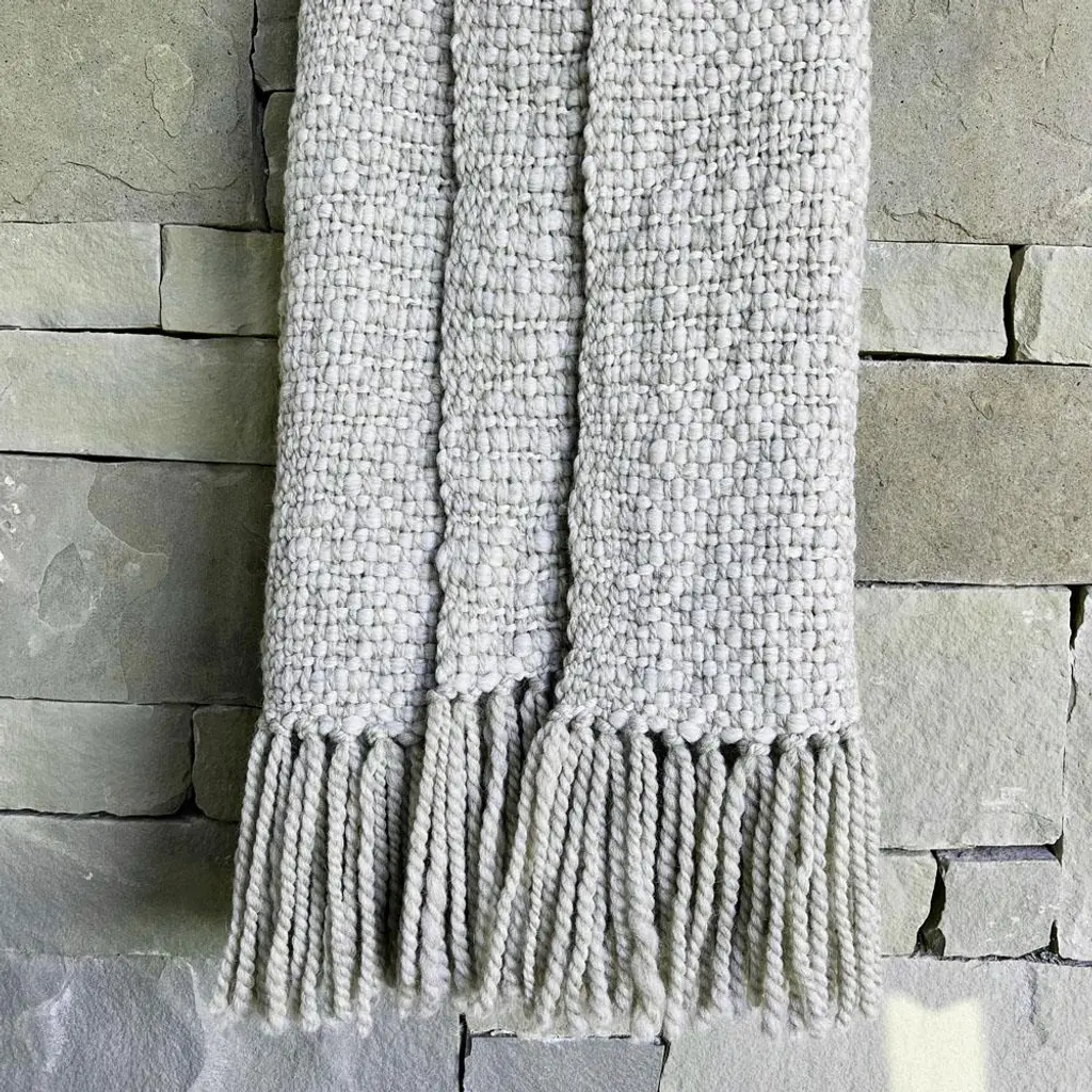 Sage Coastal Beach Pebble Wool Handwoven Throw Blanket