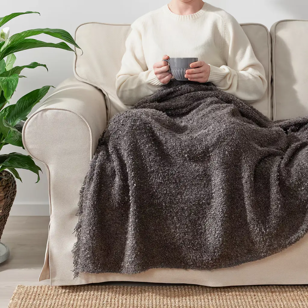 SANDBRODD Throw - anthracite 51x67 ". The soft and cuddly crinkle-knit fabric is made solely from recycled polyester.