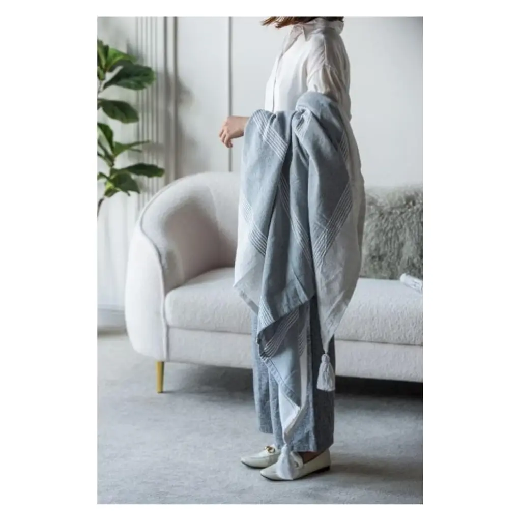 Sapphtopaz 50x60" Decorative Cotton Throw Blanket, 2-pack Decorative Recycled Cotton Accent Blanket, Gray Block Striped Blanket