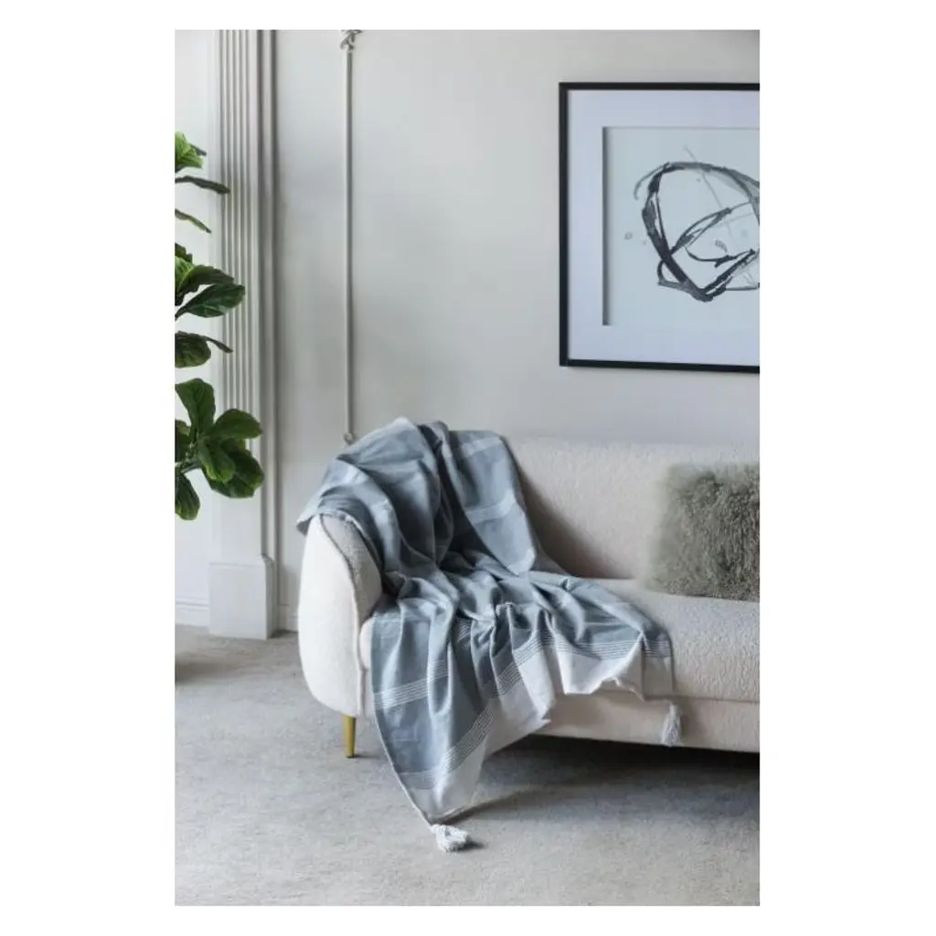 Add cozy style to any space with this 50"x60" decorative throw blanket, featuring white block stripes across a light gray base. Crafted from 80% recycled cotton and 20% polyester, it’s perfect for staying warm while doubling as an accent piece on sofas, beds, or chairs. The neutral colorway blends effortlessly with modern, farmhouse, boho, or Aztec decor, making it a versatile addition to living rooms, bedrooms, or reading nooks. Lightweight at 1.3lbs, this blanket balances softness and durability—ideal for snuggling or elevating your decor.