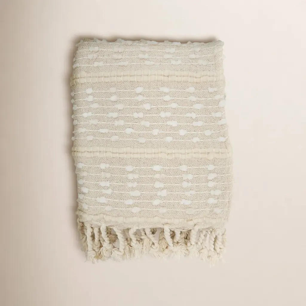 Experience pure bliss with Woven Stripe Throw Blanket! This luxurious and stylish blanket features a textured stripe design and trendy fringe details, adding a touch of sophistication to any space. Perfect for snuggling up on cold days or adding a cozy touch to your decor, this blanket is a must-have accessory for your home.