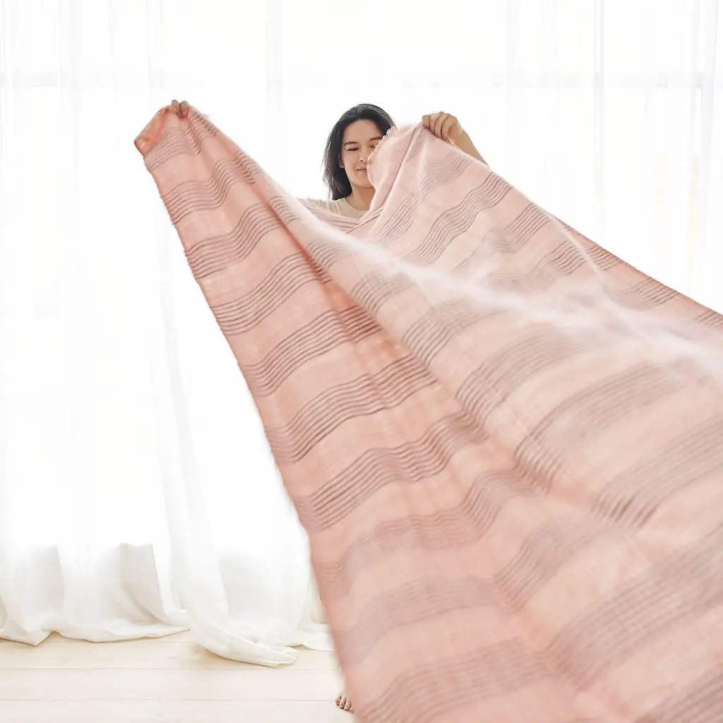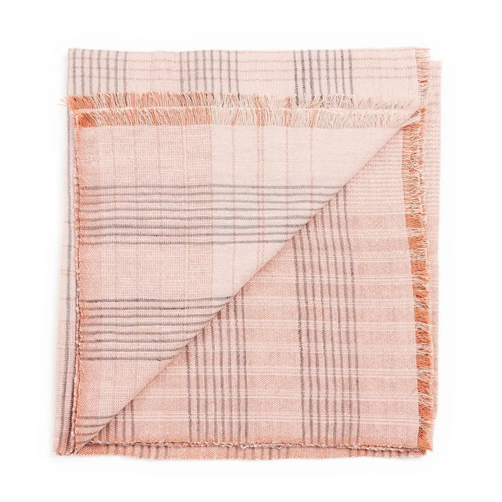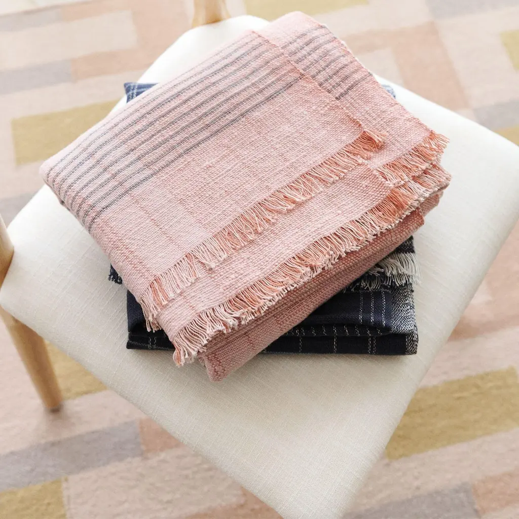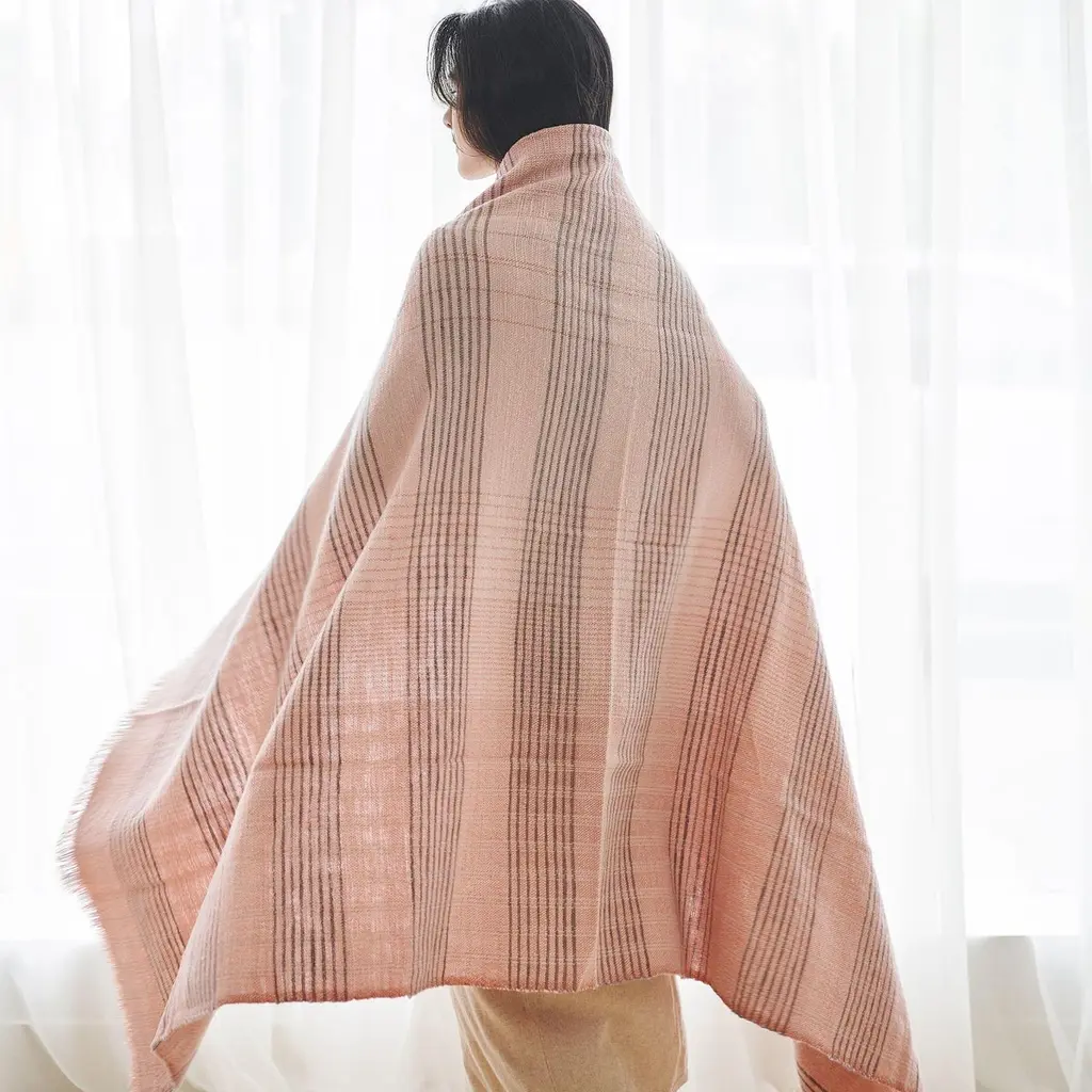 Silica Rose Throw is a contemporary take on combining stripes & checks pattern in a serene color palette of dusty rose salmon and grays. Fine detail of hand weaving is done meticulously on a handwoven textile. Each piece is 100% handmade making it a unique sustainable throw which is both classic and minimal modern in its appeal.Silica Rose throw is soft to touch and wears well over time. Requiring attention to detail and finishing, this throw luxuriously combines heritage value. high quality craftsmanship & it is reversible to arrange and use. Fringes are kept short for a modern look.For this textile, we are using only the highest quality of 100% pure merino from Nepal and linen from Belgium. Eco friendly dyes Swiss dyes are specifically engineered to promote the lifespan of each throw. As this luxurious piece is completely handmade from start to finish, each piece is unique.Classic in design, Silica Rose is a timeless throw / blanket will complement your personal or living spaces, is a thoughtful gift and also supports artisan communities ethically.Throw Size: 110 cm X 210 cm Material: 100% soft merino from Nepal , 100% pure linen from Belgium.Colors: Dusty rose, gray , salmon hues.Artisan base: Ethically & responsibly handwoven by artisans in Nepal.Wash care: Gently hand wash using gentle detergents. Hang dry in cool shaded place or delicately dry clean only.What Makes Your Purchase Sustainable ?Eco friendly dyes free of toxic chemicals used.Support employment of women artisans.100% handmade ethical manufacturing process by artisans.Uses only 100% natural responsibly sourced materials.Small batch production ensures higher quality & less wastage.