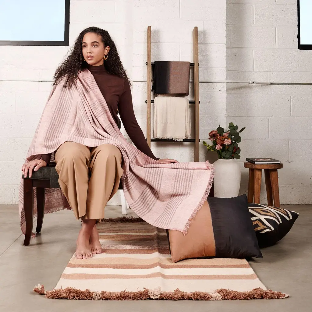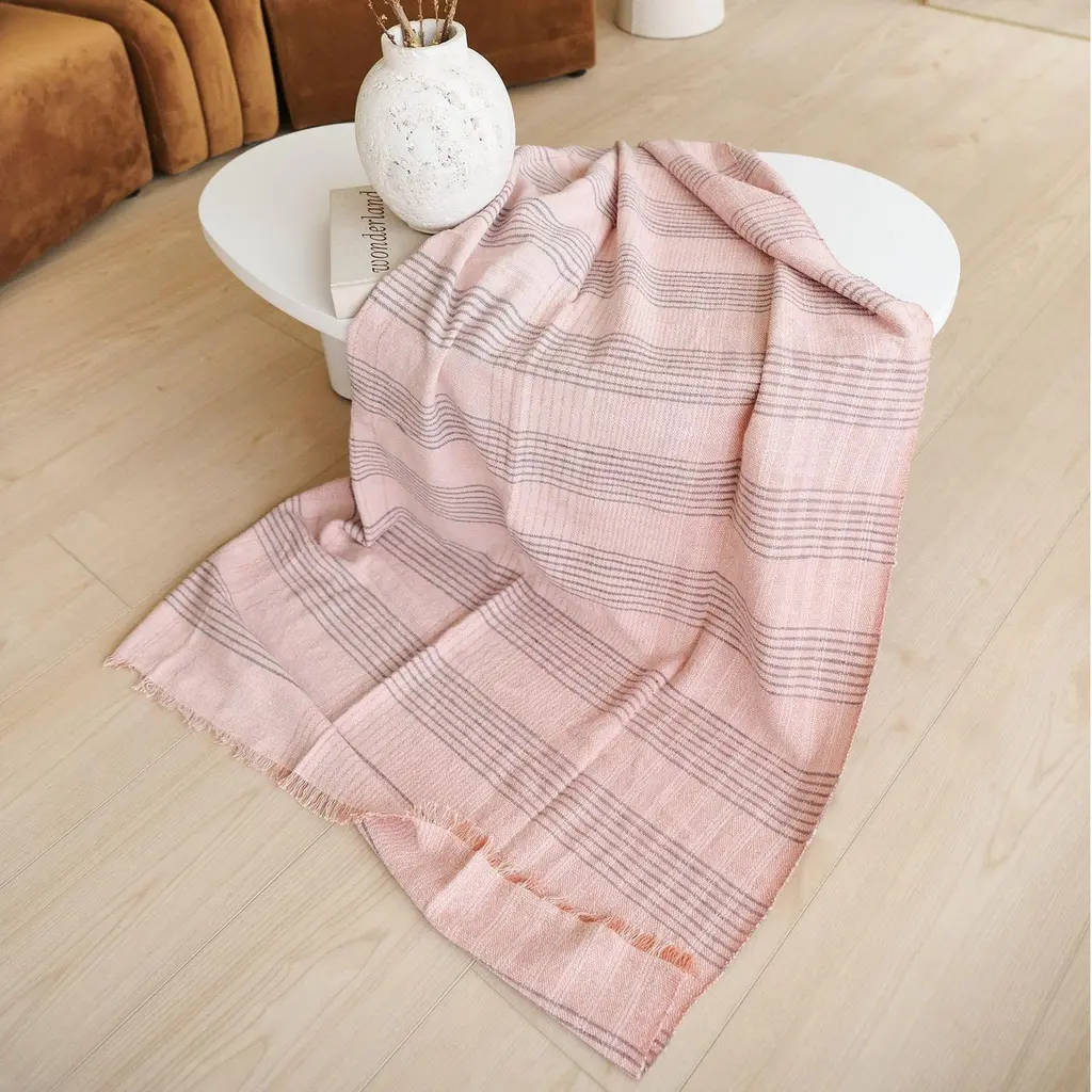 Silica Rose Stripes Pattern Soft Handwoven Merino Modern Artisanal Throw