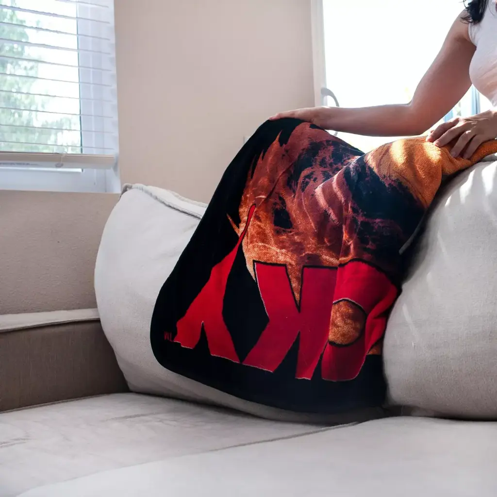 Calling all Child's Play fans! Show off your love to the hit horror movies with this warm and cozy silk touch throw blanket! The Child's Play blanket features vibrant artwork of a classic killer doll Chucky. It's soft to the touch, made up of 100% polyester material and measures a roomy 50 x 60 inches. It makes a perfect addition to your Child's Play collection. Lastly, it's also easy to clean, machine wash with cold water is highly recommended.