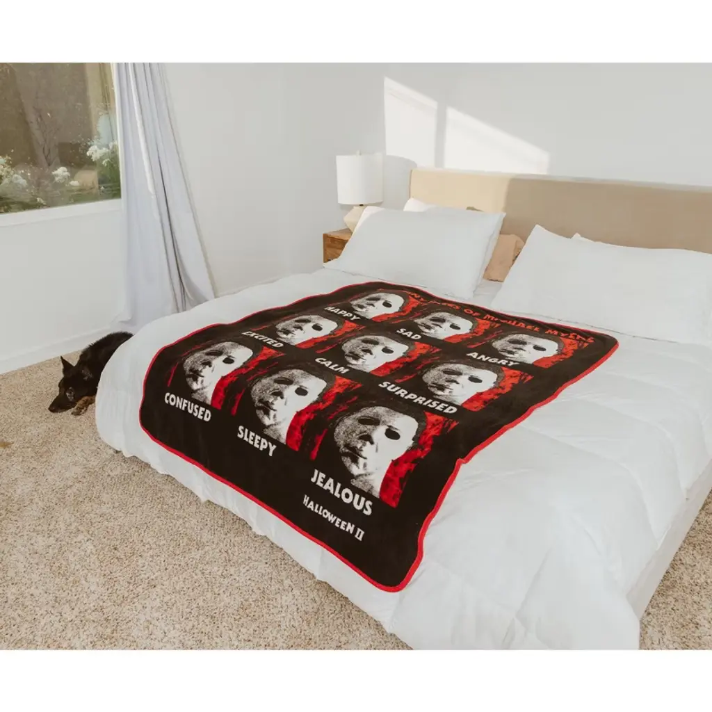 Silver Buffalo Halloween Ii "The Faces Of Michael Myers" Raschel Throw Blanket | 45 X 60 Inches