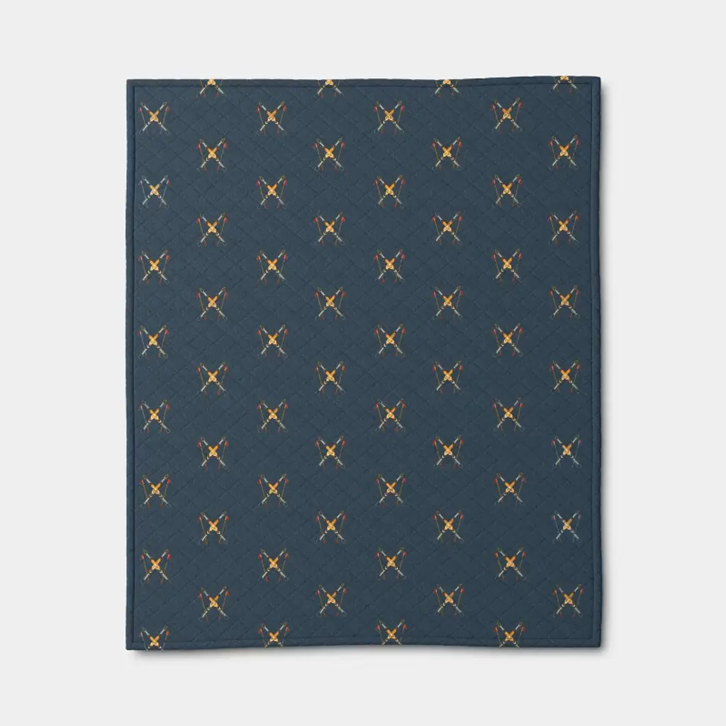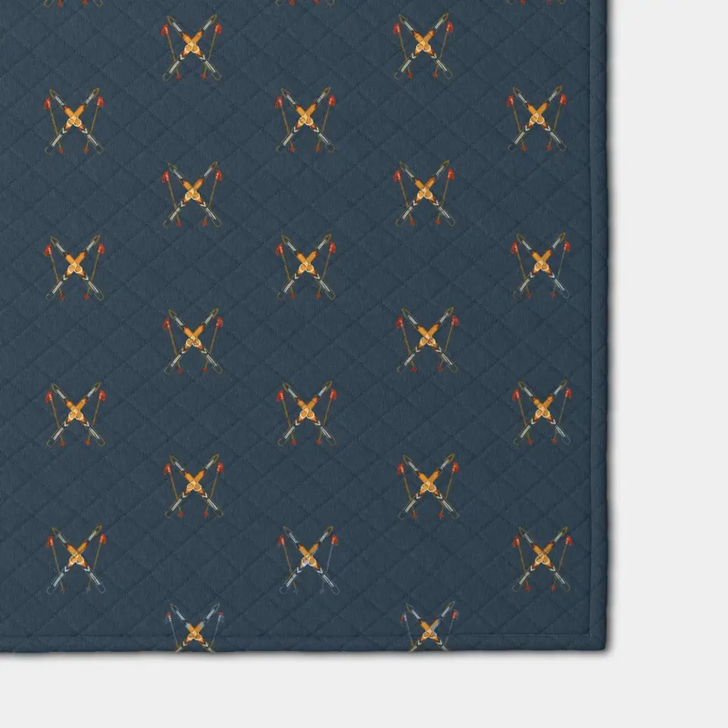 Skis Quilted Jersey Throw Blanket With Faux Shearling Reverse Navy - Room Essentials™