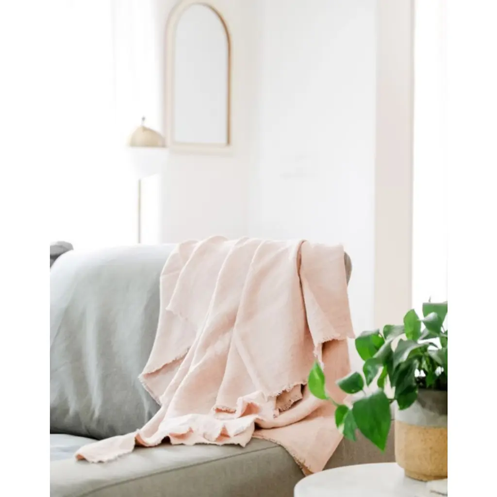 Slickblue Linen Throw Blanket With Frayed Edges, Stone Washed 84 X 60 Inch Cover In Blush