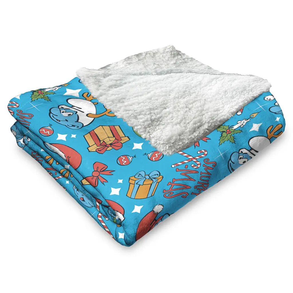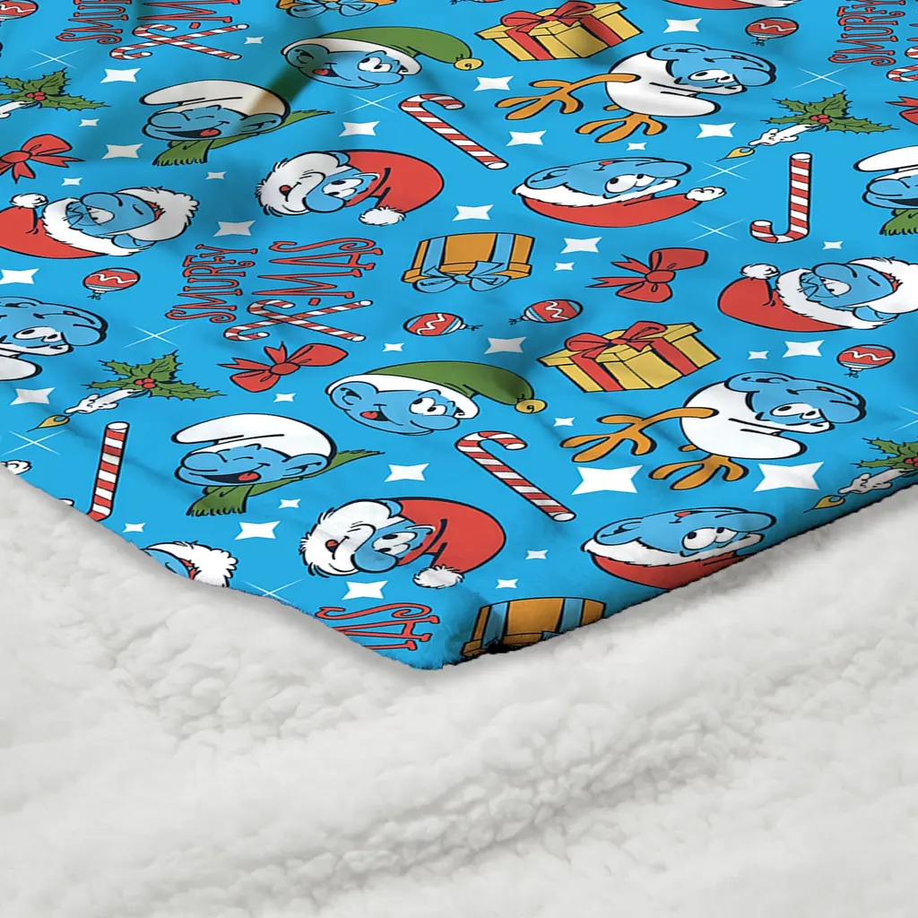 Snuggle up with the Smurfs Christmas Silk Touch Sherpa Throw Blanket, where festive cheer meets charming design. Made from incredibly soft Silk Touch fabric, this throw offers warmth and comfort all season long. Whether draped over your couch, chair, or bed, the blanket's delightful design and soft texture make it the perfect companion for winter relaxation. Papa Smurf and his companions bring the holiday spirit to life, making it a perfect piece for any Smurfs fan or festive décor enthusiast. This throw is ideal for those who want to embrace both the joy of the season and the fun of Smurfs. With its cheerful colors and cozy feel, it's sure to become a favorite addition to your home, whether you're curling up with a good book or enjoying time with family.Features: