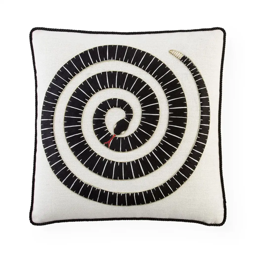 Hand-embroidered by artisans, our cloud white Snake Embellished Throw features an intricately intertwined duo of slithering serpents rendered in delicate black beadwork. A plush piece of couture craft, this cozy essential is crafted in an unbelievably soft and luxurious merino wool—just the accent your abode deserves.