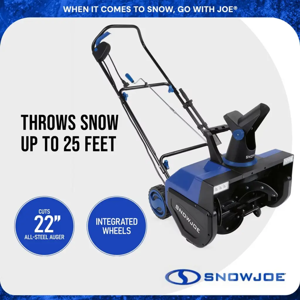 Snow Joe Corded Electric Walk Behind Snow Blower, 15-amp Motor, 22" Clearing Path With 25 Feet Throwing Distance & 2 Led Lights, Snj-sj627e