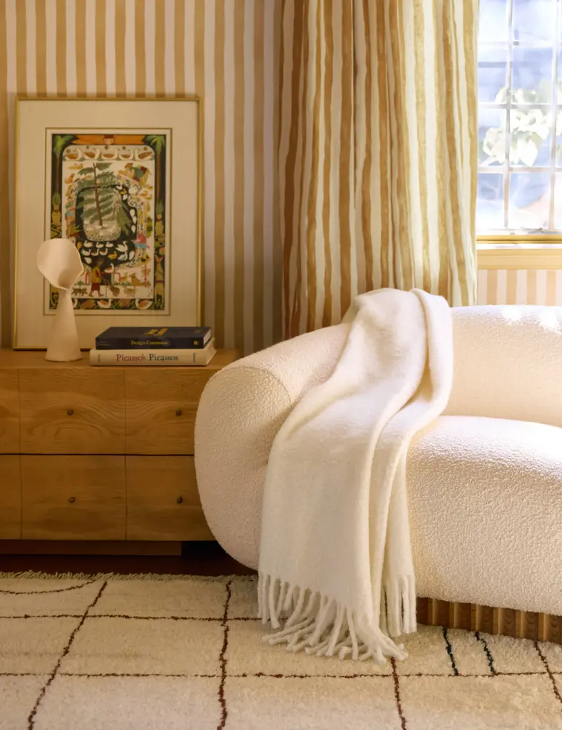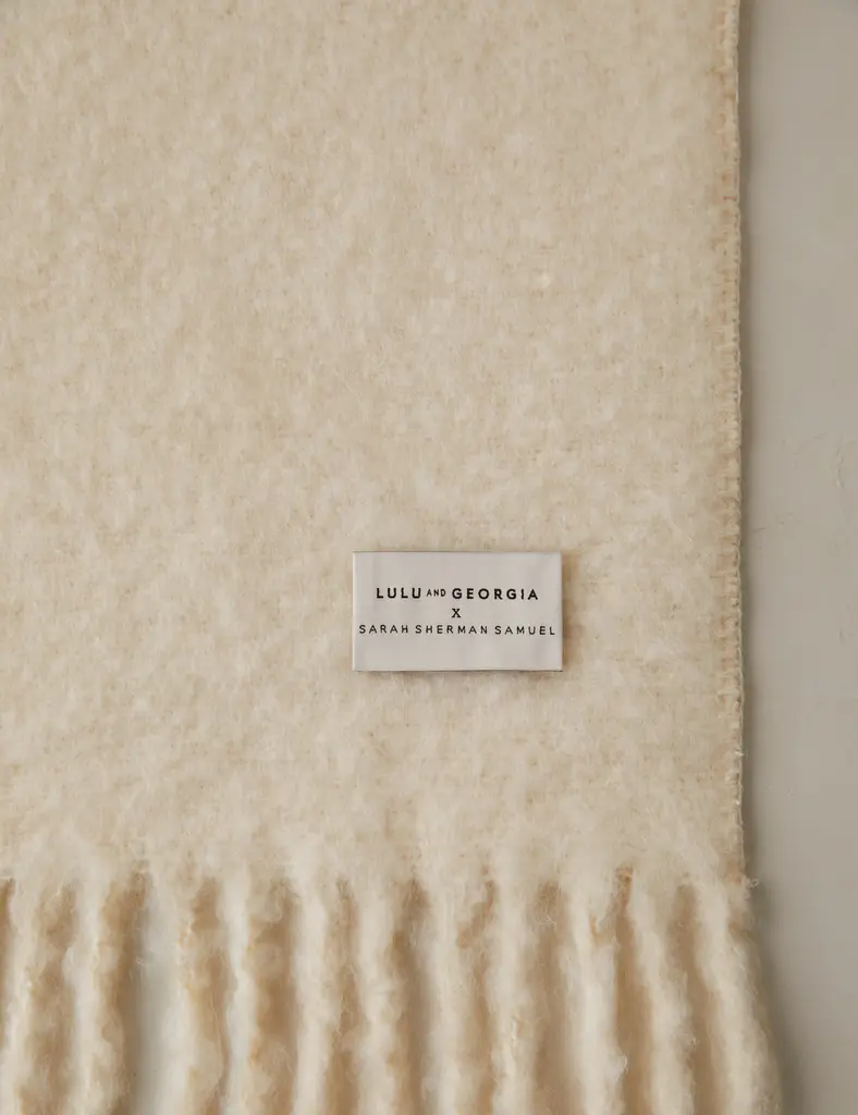 Layer a supple touch into the room with this faux mohair throw. The luxurious texture and soft tassels make this blanket perfect for curling up on a cozy night. This piece is from our exclusive Sarah Sherman Samuel collaboration and features all the trademarks of her warm, edited style.