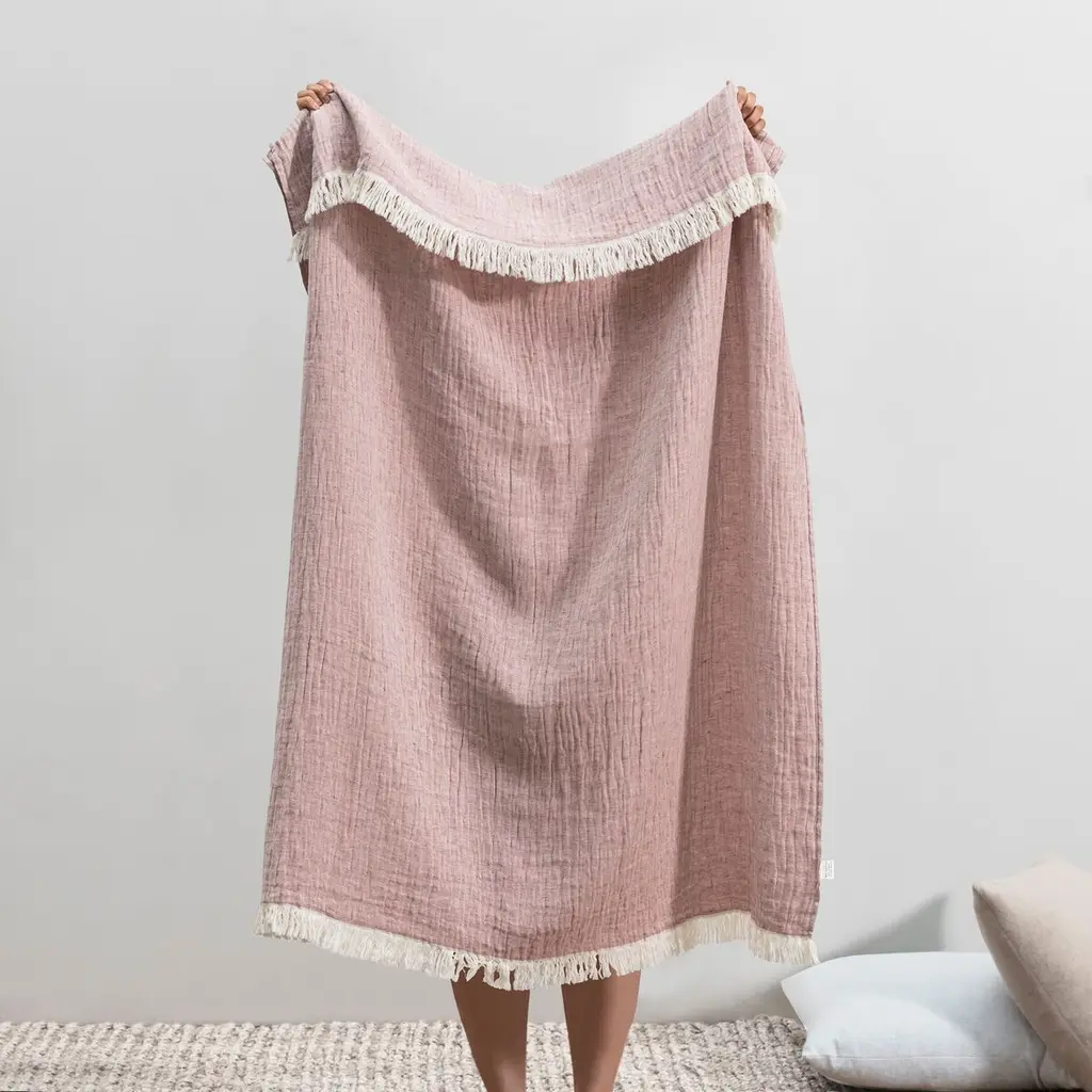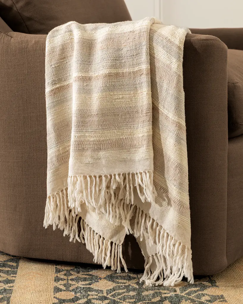 Made in Portugal of a cotton-and-linen blend, this already-soft throw will only become more sumptuous over time. Long fringe adds to its allure.