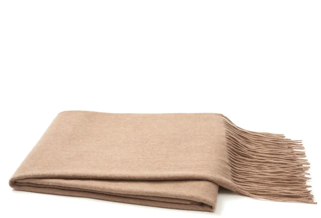 The cashmere fiber of this waterweave throw strikes the perfect balance of luxurious softness and lightweight warmth, while the extra-long fringe adds a chic, artisanal finish. So versatile, yet luxe and sophisticated, this piece makes a great gift. Made in Mongolia.