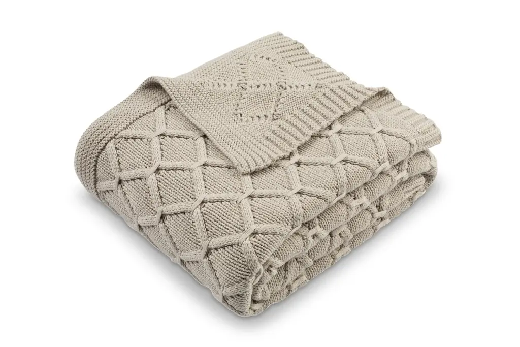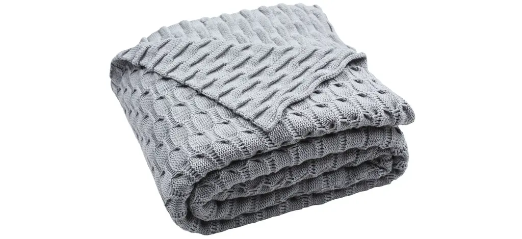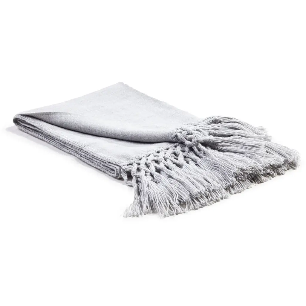 Our mist Open Knit throw is a great way to add texture to your living space. Its pale grayish blue hue allows it to blend in a variety of environments. This throw has fringe on each end, giving it a modern boho chic feel. Its woven design creates hole-like details that make this throw ideal for cool days.