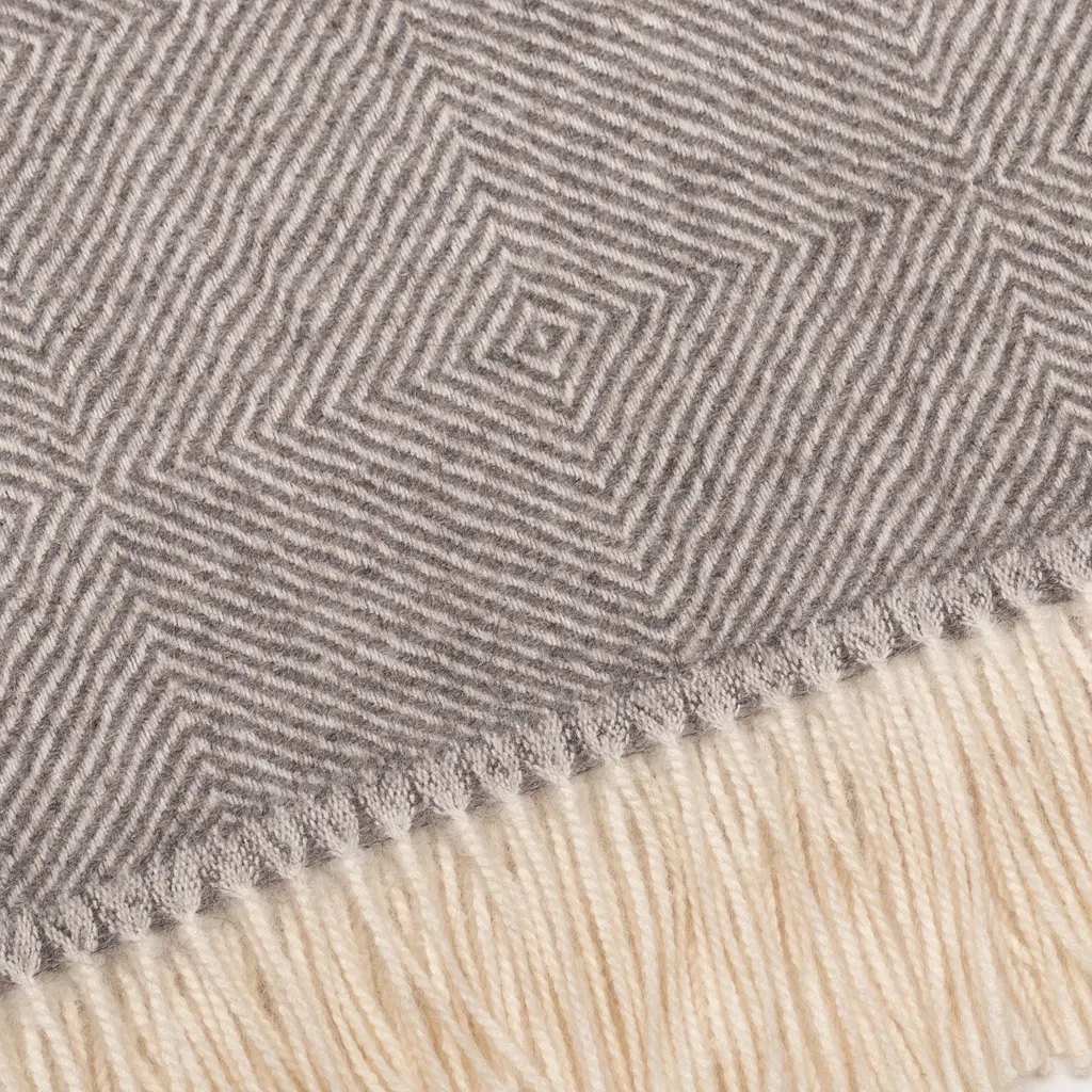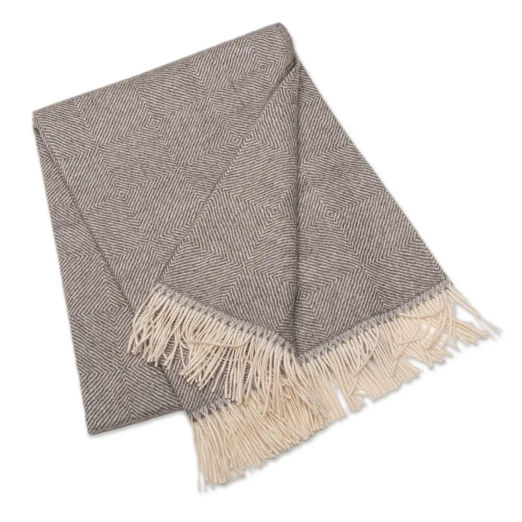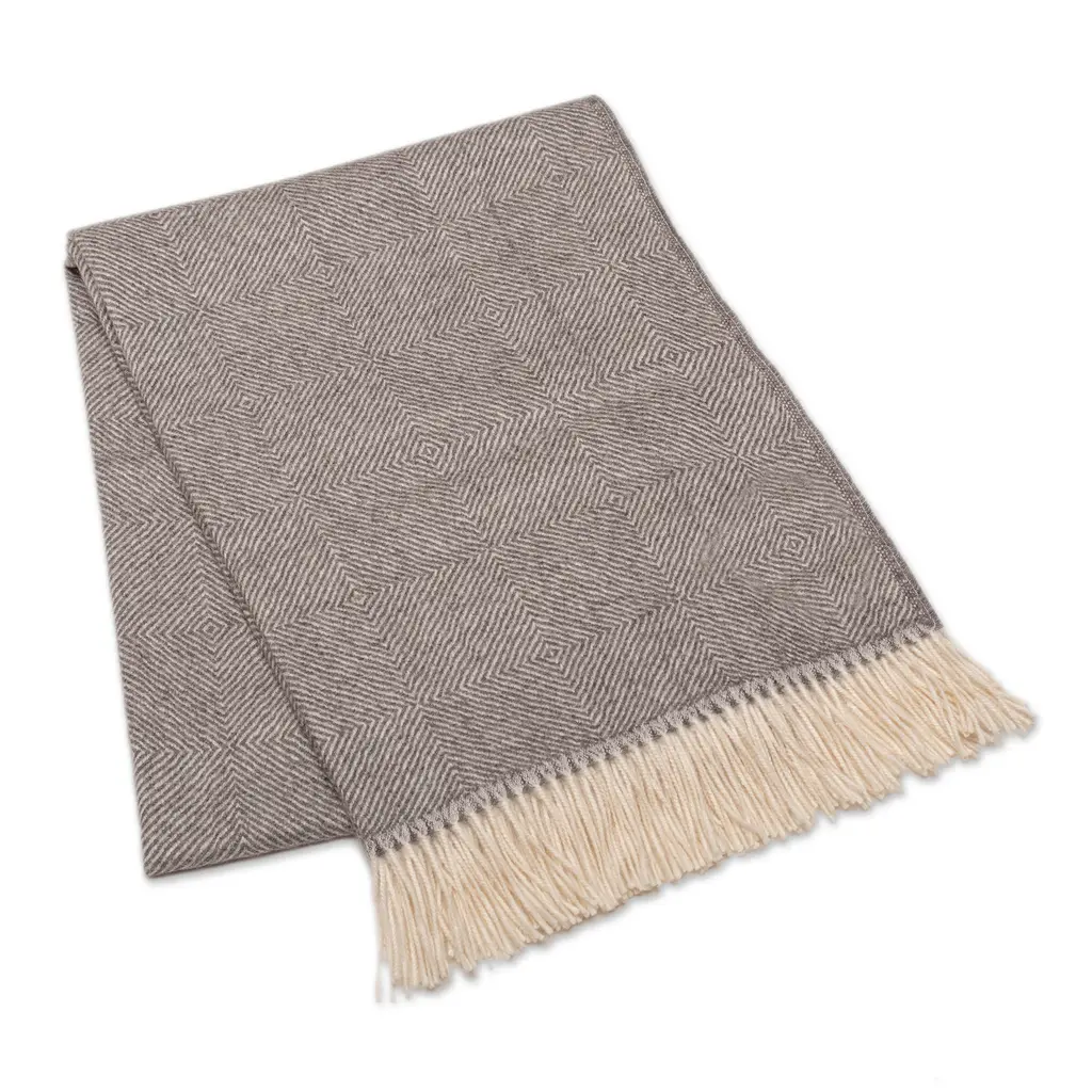 Square-Patterned Woven Grey And Ivory 100% Baby Alpaca Throw- Chill Time