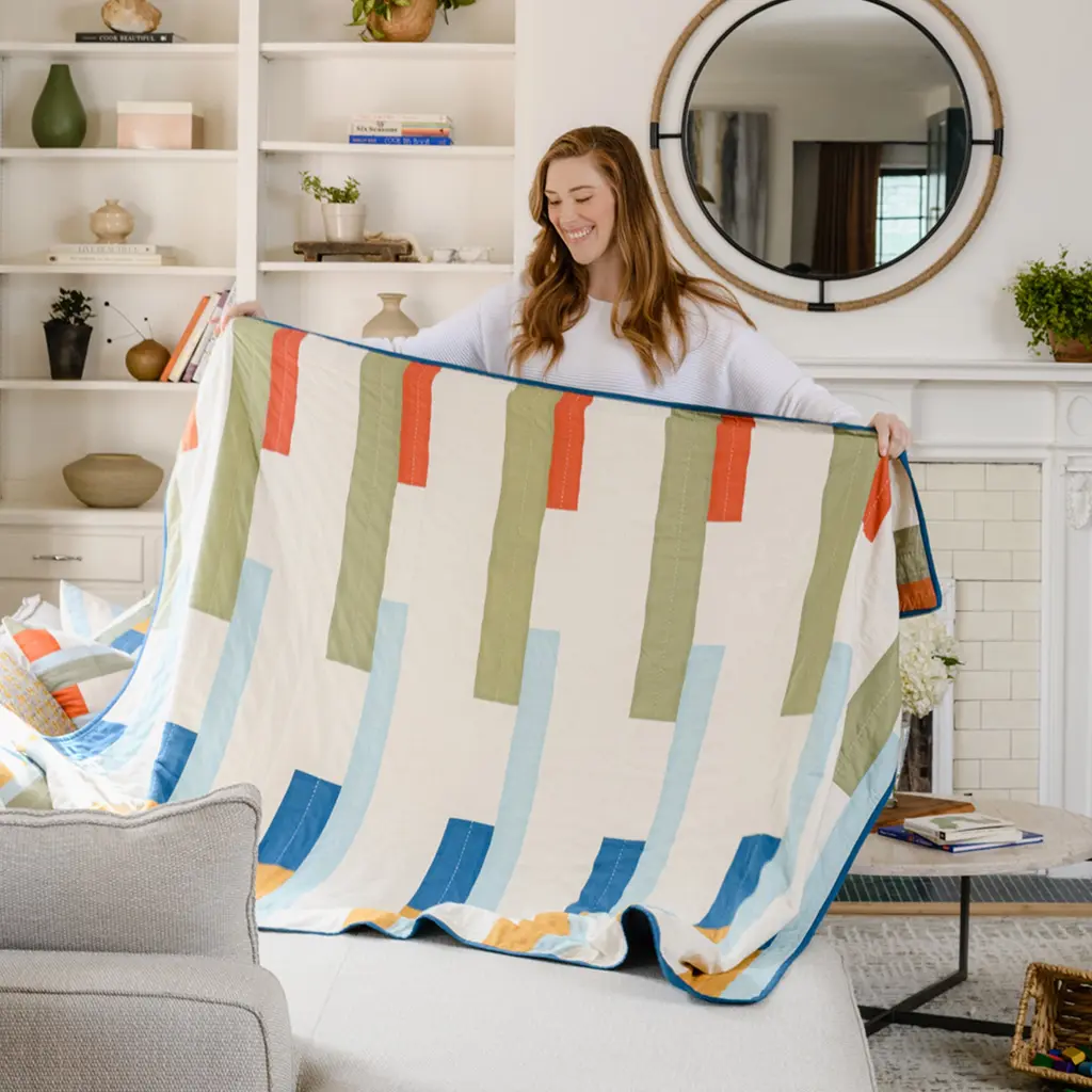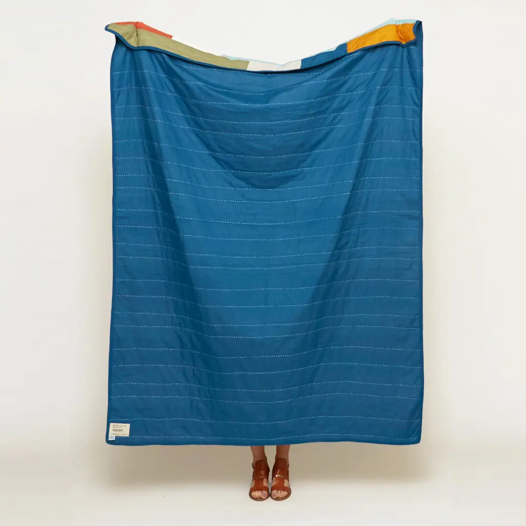 Inspired by the classic cabana stripe motif, Anchal's Stamp Patchwork Collection is made from the softest cotton and finished with traditional Kantha stitching. Stay warm and cozy while adding energetic shades of color and geometric patterns to your bed or sofa.