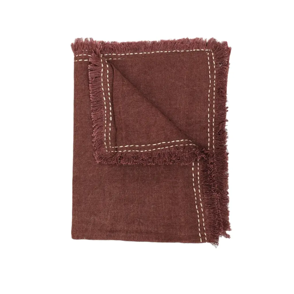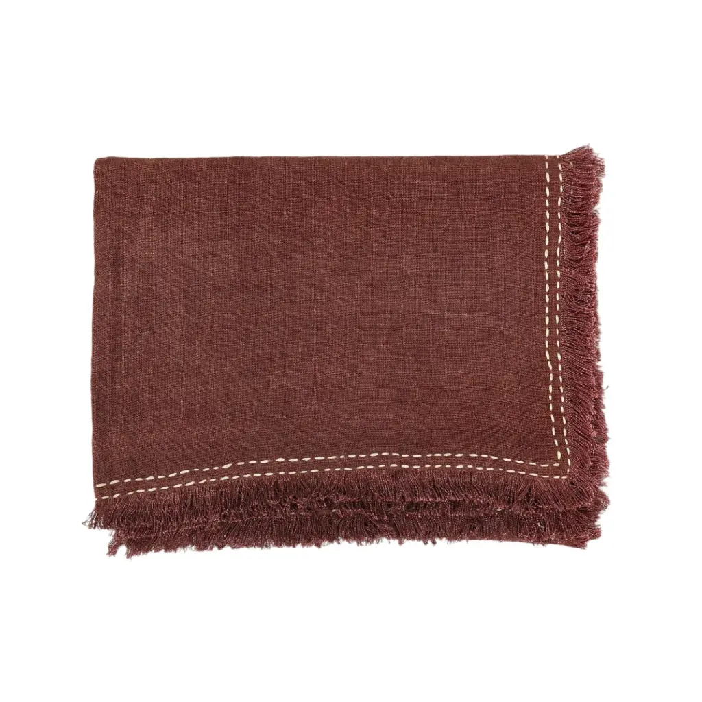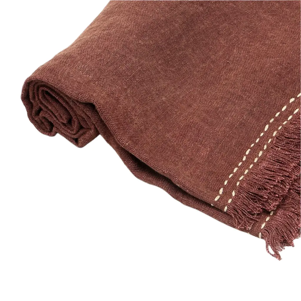 Stonewashed Linen Woven Throw Blanket With Fringe - Russet