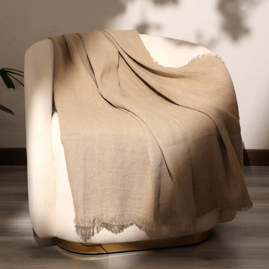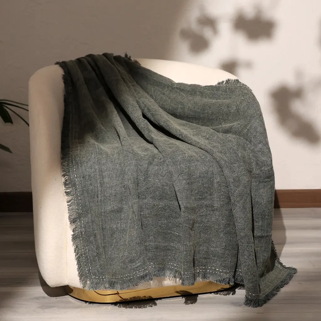 Elevate your living space with our Linen Throw, featuring elegant fringes and beautiful handwork detailing. Made from 100% linen, this throw offers a perfect combination of softness and durability. The fringed edges and intricate hand-stitching add a touch of artisan craftsmanship, making it a unique piece for your sofa, bed, or as an accent on a cozy chair. Breathable, lightweight, and easy to care for, this throw brings both comfort and style to any room. Shop now for a timeless, handcrafted addition to your home decor.