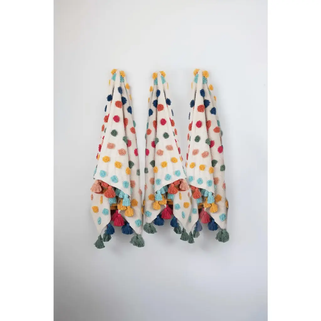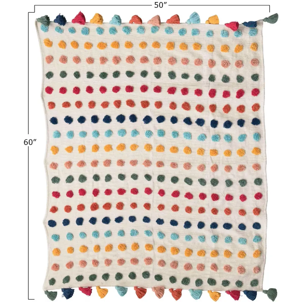 Storied Home Soft Woven Cotton Throw With Tufted Dots And Tassels, Multicolor